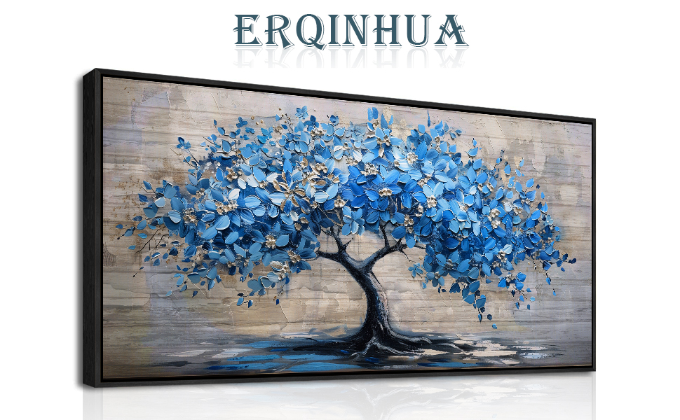 erqinhua مجردة جدار الفن غرفة المعيشة ديكور جدار كبير الخشب مؤطرة الفن لمكتب جدار الصور الأزرق الرمادي شجرة اللوحة قماش الطباعة الفنية غرفة نوم مطعم ديكور المنزل الجمالية 30 "x 60"