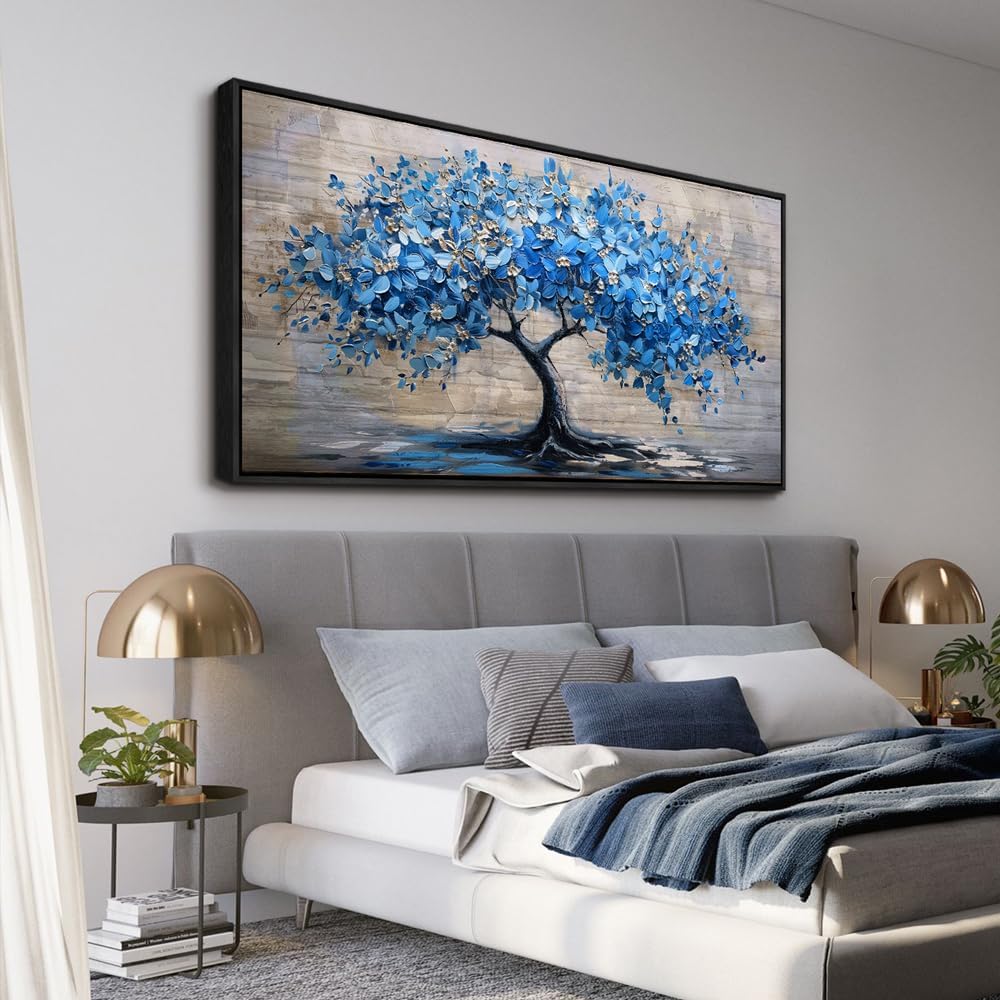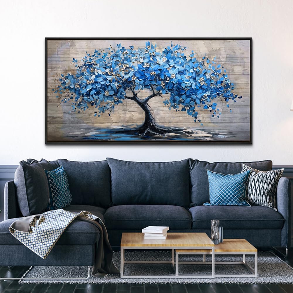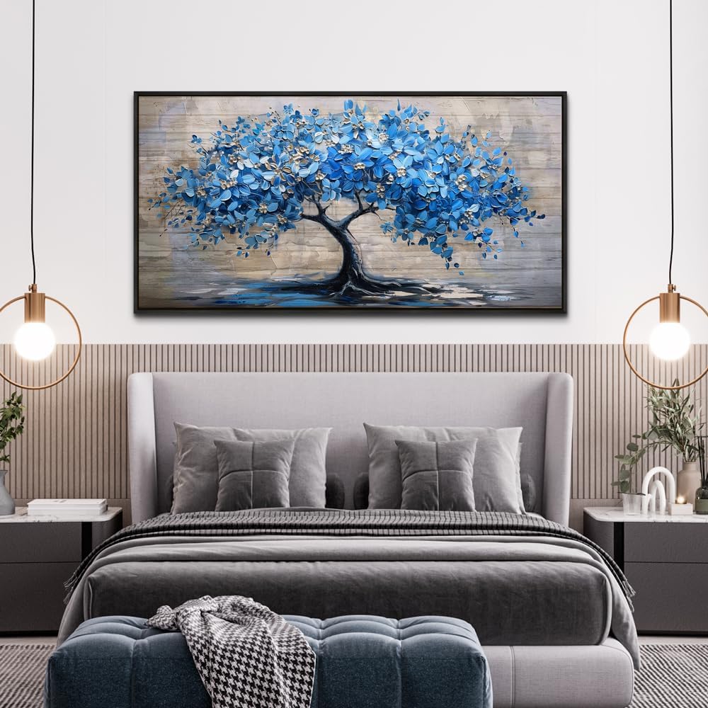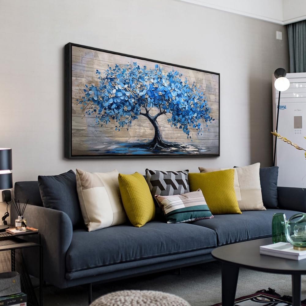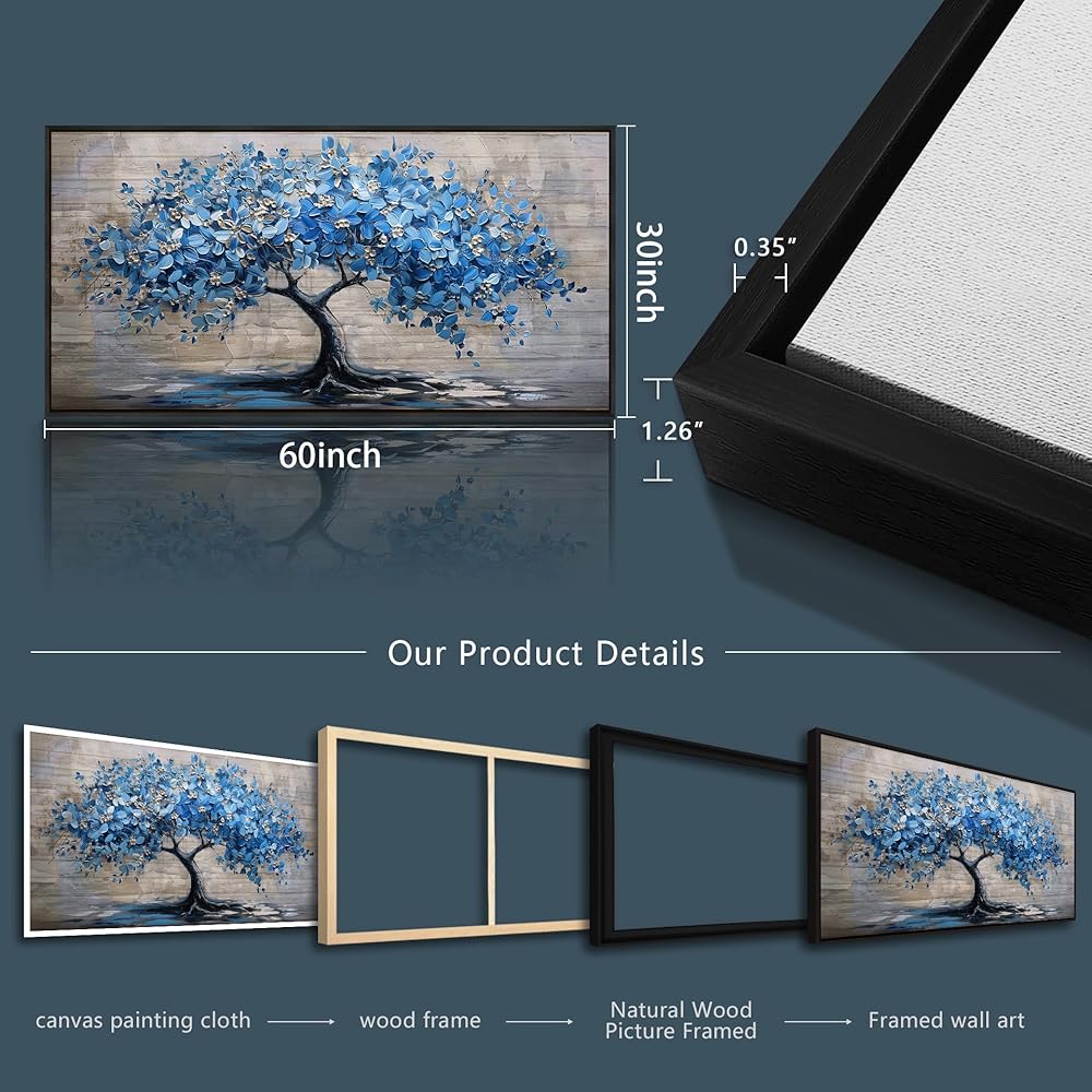 • ديكور حائط مذهل: تتميز هذه اللوحة الفنية الجدارية القماشية الجميلة المؤطرة بتصميم آسر (شجرة زرقاء بإطار أسود)، مثالية لإضافة لمسة من الأناقة والحيوية إلى أي مساحة معيشة