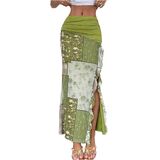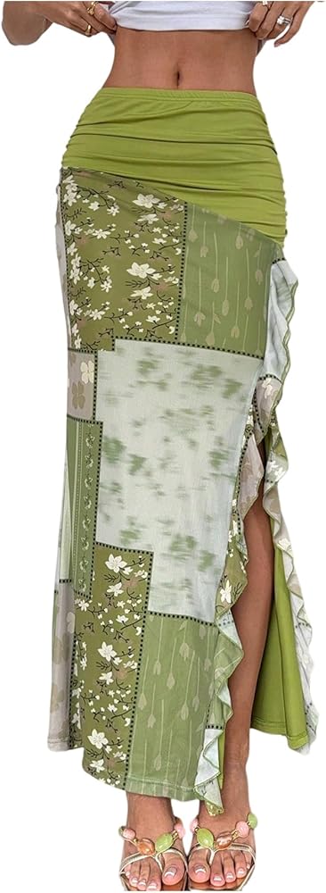 تنورة بوهو نسائية من Verdusa مزهّرة ومكشكشة، تنورة هيبي بفتحة الفخذ، تنانير طويلة مكشكشة in Kuwait