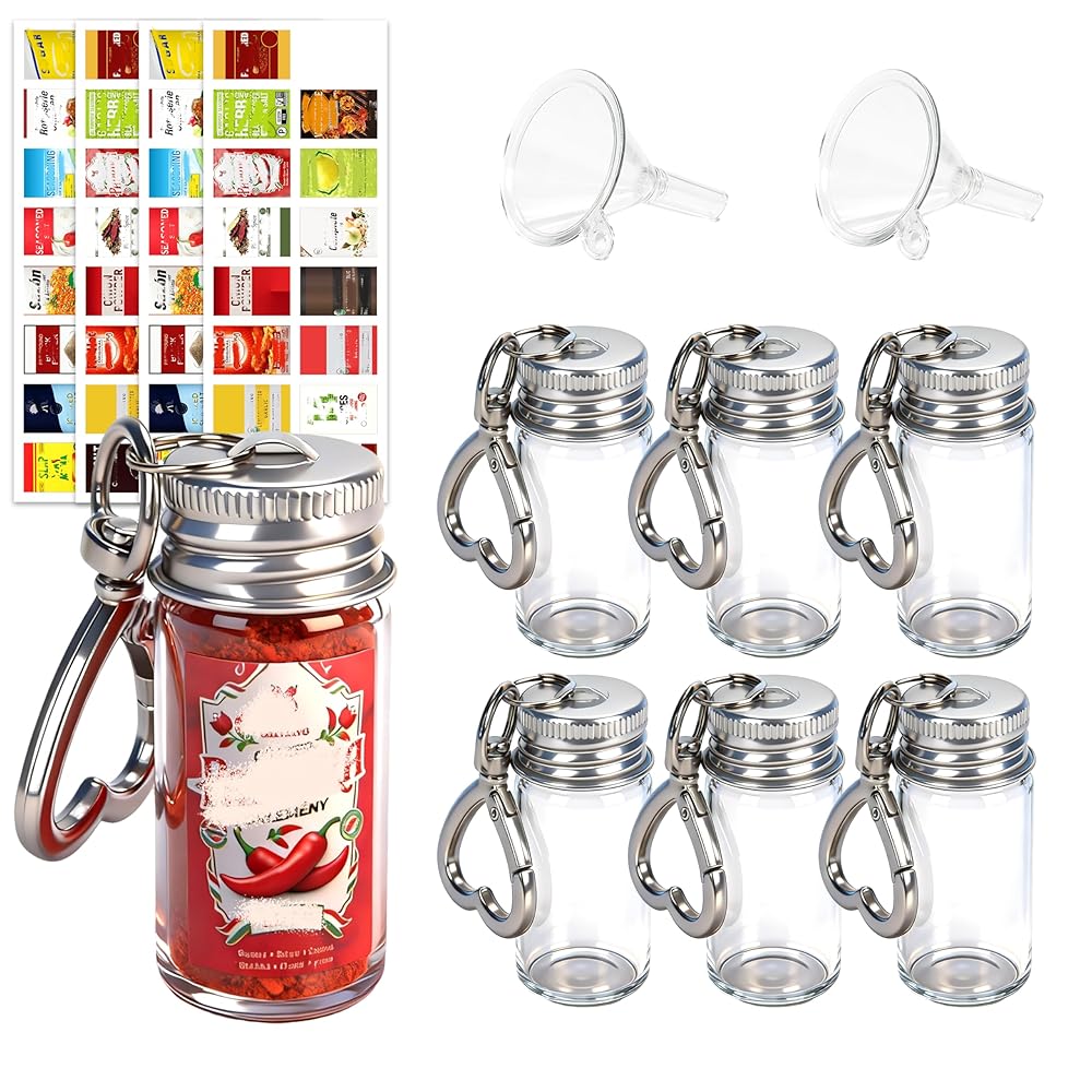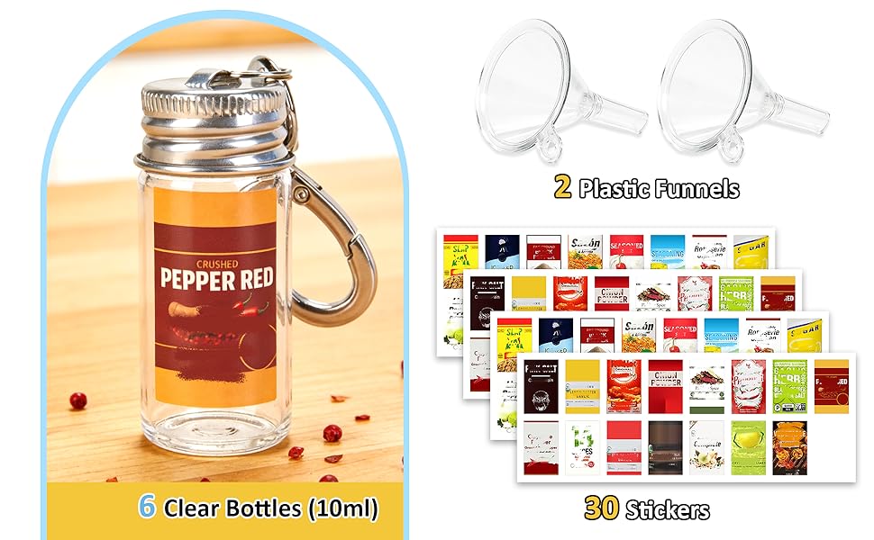 💡تتضمن العبوة: سوف تحصل على 6 برطمانات توابل فارغة على شكل سلسلة مفاتيح، وقمعين صغيرين لإعادة التعبئة، و30 نمطًا من ملصقات النكهة ذات العلامات الواضحة. مصممة لتلبية احتياجات التوابل أثناء التنقل، مجموعة زجاجات سلسلة المفاتيح الصغيرة من فانتوفو تجلب نكهتك بسهولة في أي مكان.