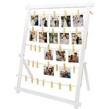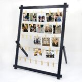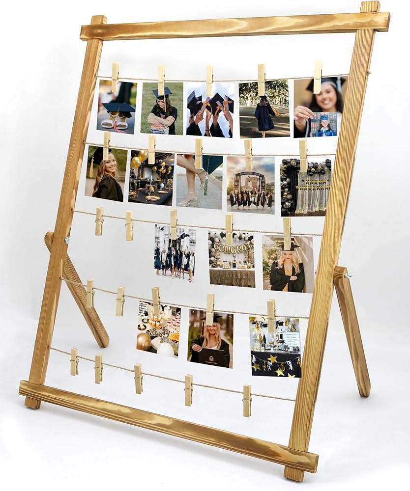 لوحة عرض صور قائمة بذاتها مع مشابك، حامل إطار صورة ثابت على سطح الطاولة يحمل أكثر من 30 صورة، ديكورات مركزية للتخرج 2026، لوح خشبي للصور والأعمال الفنية (متفحمة)