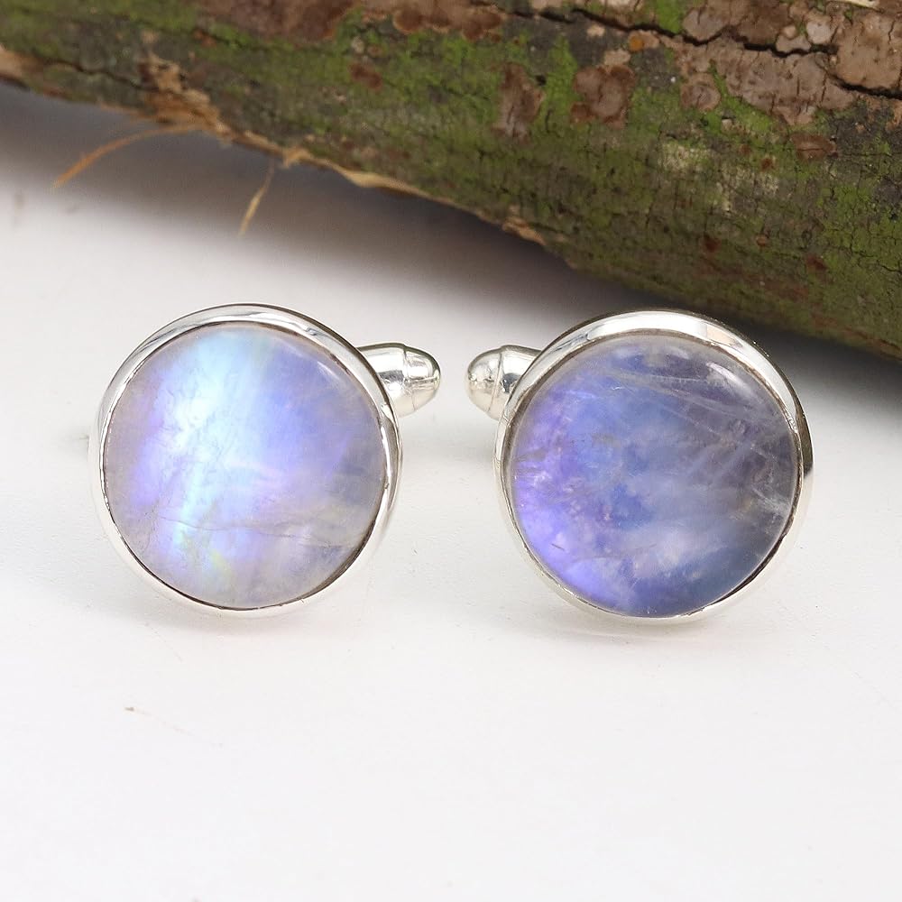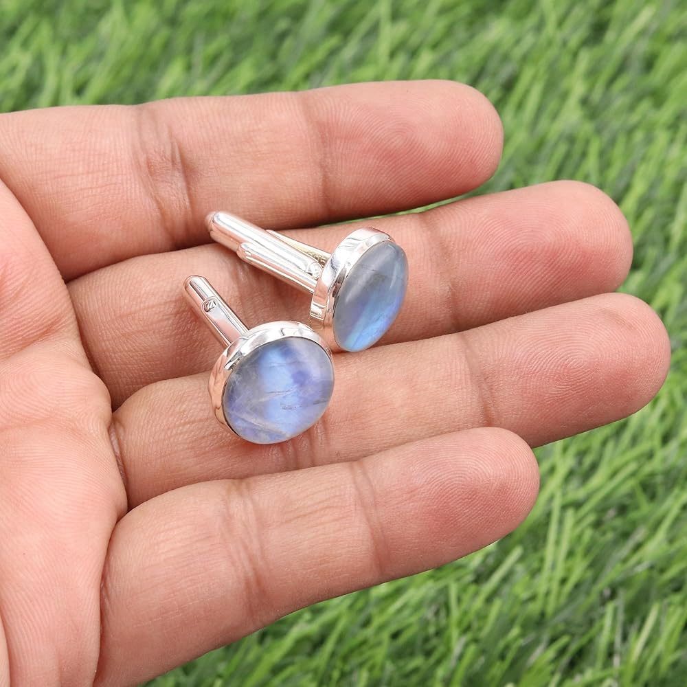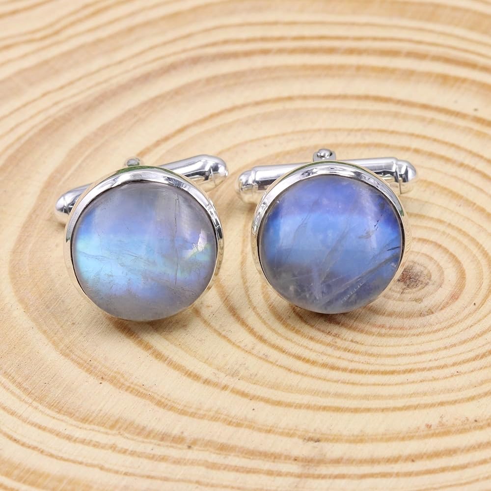 أزرار أكمام من حجر القمر مجوهرات للرجال من الفضة الإسترليني عيار 925، أزرار أكمام لحفلات الزفاف هدية فريدة من نوعها، أزرار أكمام من الأحجار الكريمة الطبيعية