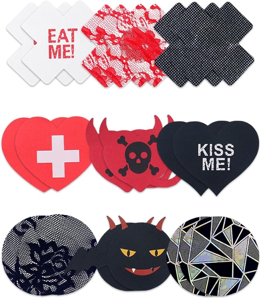• تصميمات متعددة الاستخدامات: تتضمن المجموعة 9 أزواج من أغطية الصدر بأنماط مختلفة بما في ذلك القلوب والزهور والصلبان والأنماط الممتعة للملابس والمناسبات المختلفة.