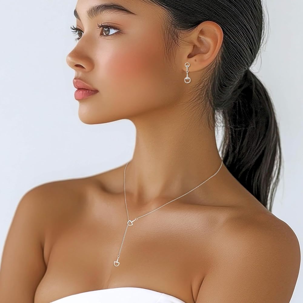• Refined Equestrian Lariat Design – Minimalist Y-shaped necklace featuring a delicate horsebit / snaffle-inspired drop that adds a subtle western accent with timeless, polished appeal.