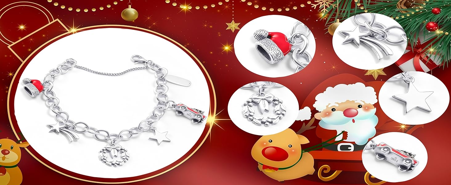 سوار سحر عيد الميلاد من الفضة الإسترلينية، مزين بشجرة عيد الميلاد، والقطار، وبيت خبز الزنجبيل، وحليات مزلقة. قابل للتعديل، مثالي كهدية في العطلات
