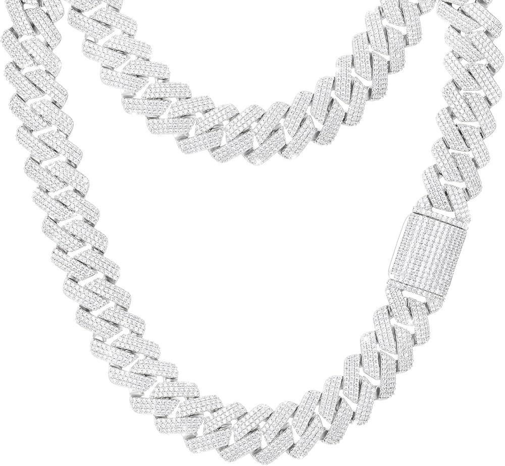 نصائح للعناية بالقلادة الكوبية الفاخرة: سلسلة الارتباط الكوبي الكبيرة بسمك 20 مم هي 5A+ CZ، وهي جنبًا إلى جنب مع نمط سلسلة الموضة والهيب هوب للرجال والنساء. الوصلة الكوبية الفضية مصنوعة من آلية قفل بمشبك صندوقي، متينة ومتينة. سهل الارتداء والخلع. لذا يرجى الانتباه إلى عدم ملامسته للمواد الكيميائية والعرق والماء لتجنب بهتان اللون وفقدان البريق.