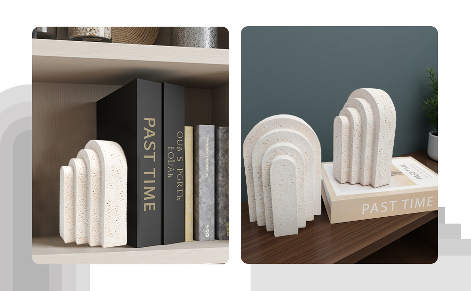 • 【ديكور رف متعدد الاستخدامات】 ليس عمليًا فقط كسدادات للكتب، ولكن أيضًا مزدوج كديكورات رف أنيقة تعزز جمالية مساحتك.