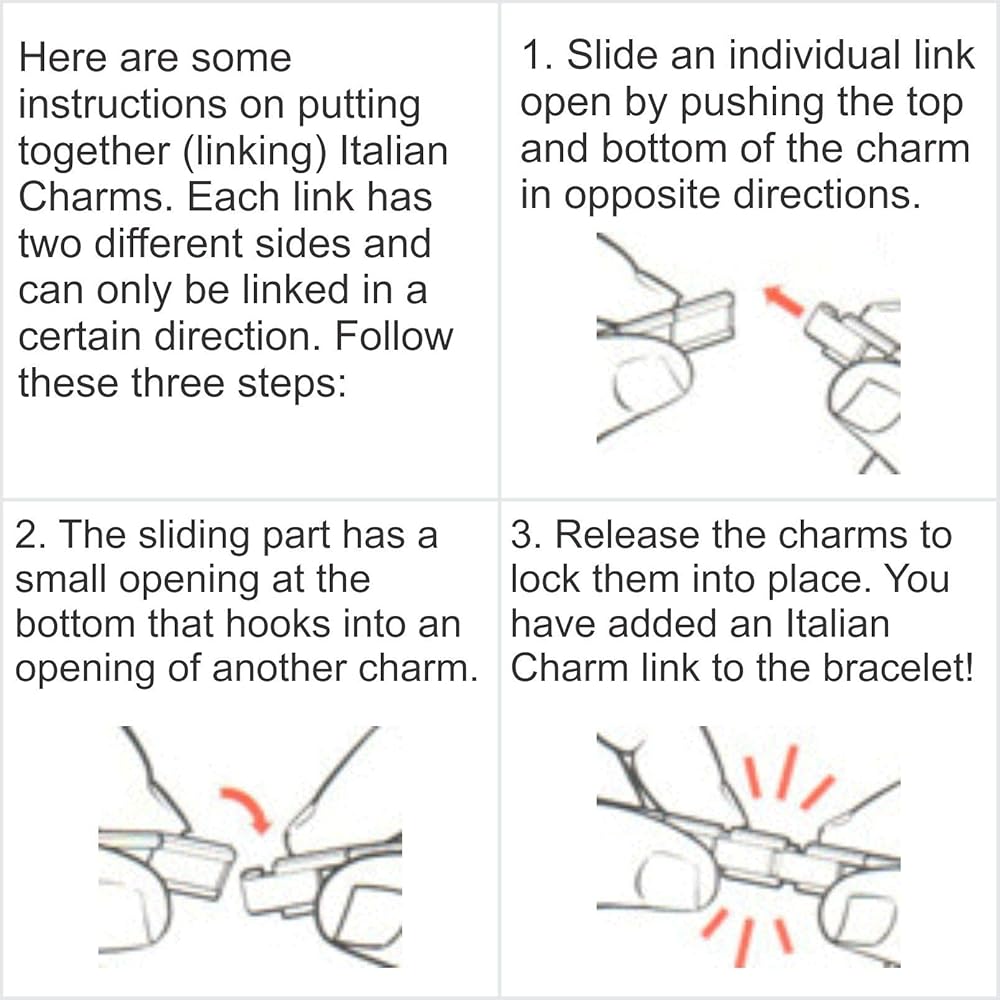 Interlocking charms (AKA links) hook to other charms using an internal spring.