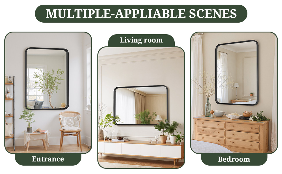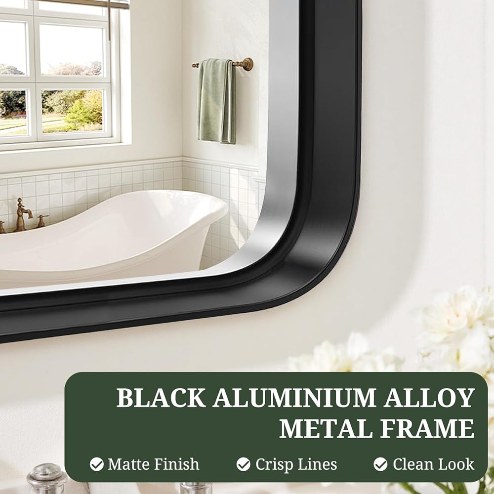 Premium Anti-Rust Frame: Designed with an aluminum alloy frame, this black metal mirror is anti-rust, anti-water, and built to last, while the rounded corners add a modern decorative touch.