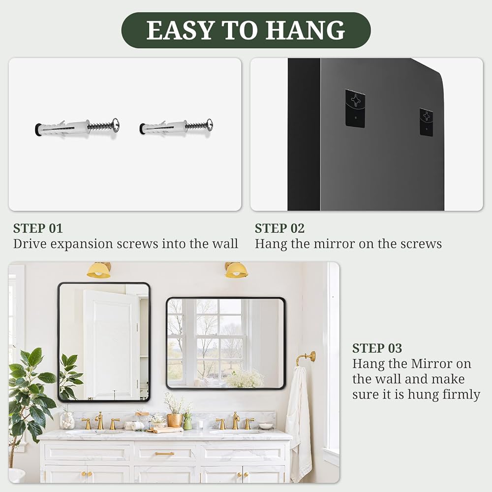 Clear HD Reflection: Our bathroom vanity mirror is crafted with premium HD float glass that provides a crystal-clear reflection with no distortion, making it ideal for daily grooming and makeup.