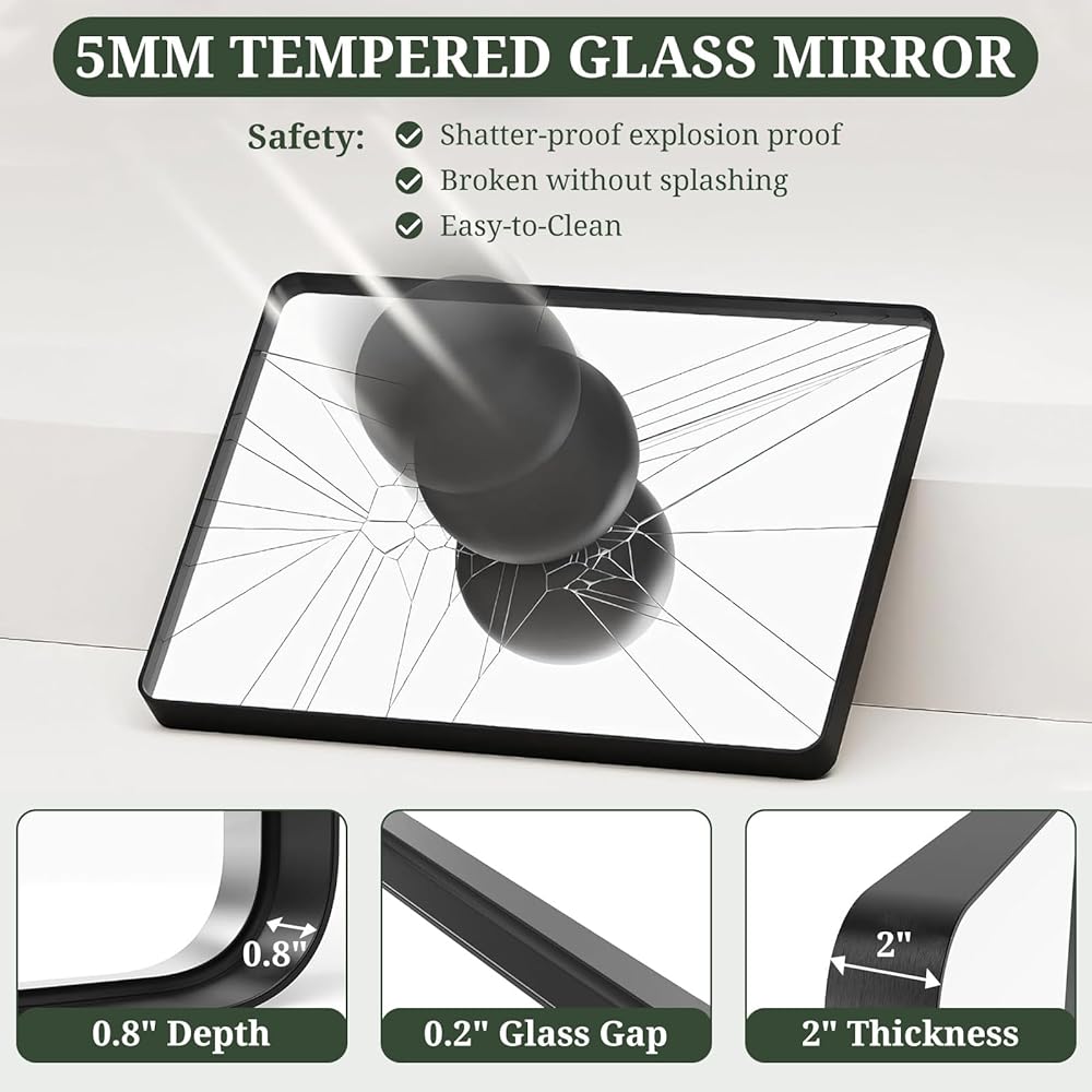 Durable Tempered Glass: The rectangular mirror features 5MM shatterproof tempered glass, which is five times stronger than ordinary glass and ensures safe use in your bathroom or living space.