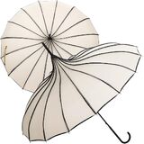 This pagoda style umbrella features a flowing canopy inspired by vintage and Victorian design. Its sculpted silhouette creates a classic look that works well as a gothic parasol umbrella for outdoor styling, photography, and decorative use.