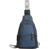 البناء: جسم قماشي متين مع لمسات من الجلد الأصلي، وأجزاء صلبة من المعدن، وحزام بعرض 1.5 بوصة قابل للتعديل يمتد من 29 بوصة إلى 54 بوصة.