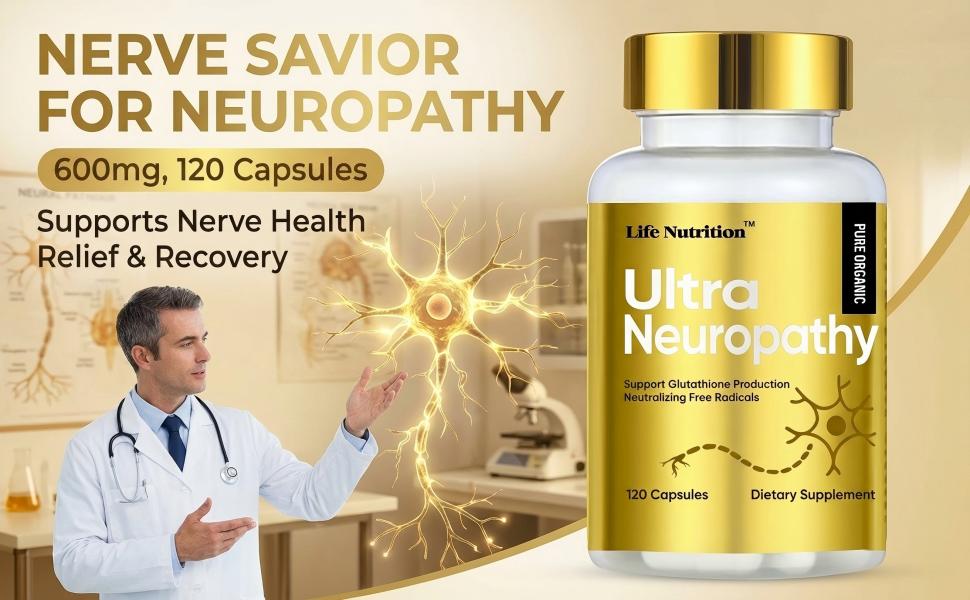 منقذ الأعصاب من لايف نيوتريشن للاعتلال العصبي، 120 كبسولة مكملة لتخفيف الأعصاب مع 600 ملغ من حمض ألفا ليبويك، أقصى دعم للقوة للقدمين واليدين والساقين والظهر والرقبة