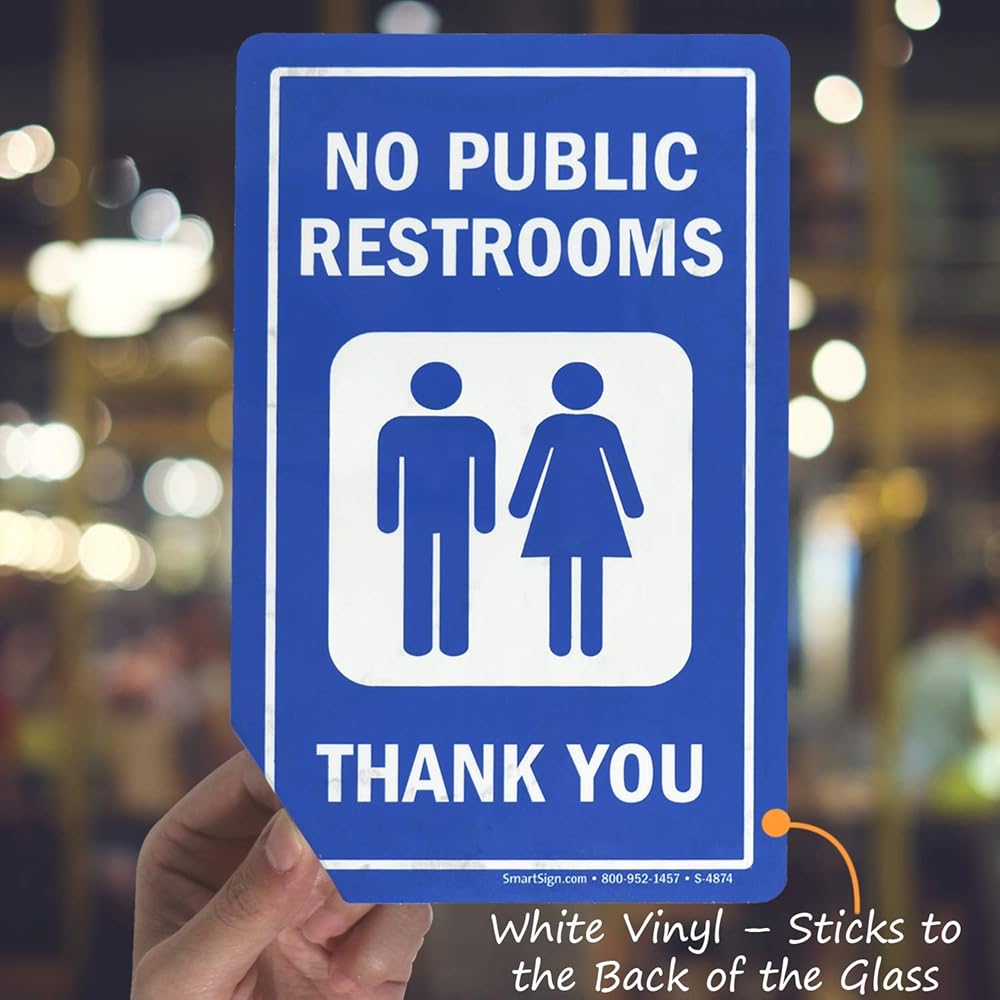 Our GlassPal Window Decal are great for store entrances and windows. Polyester film is durable, and is heat and UV resistant. Unlike many other labels, our No Public Restrooms labels come with adhesive on the front of the label.