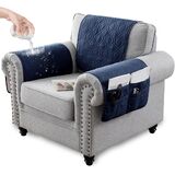 غطاء مسند ذراع مع مسند للرأس، غطاء منزلق لمسند ذراع الكرسي مع جيوب جانبية، مقاوم للماء، واقي أثاث غير قابل للانزلاق للحيوانات الأليفة (أزرق برلين، مقعد واحد 3 قطع) in Kuwait