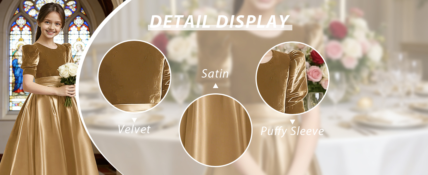 خامة عالية الجودة: الجزء العلوي من الجسم مصنوع من المخمل من أجل الدفء، بينما التنورة السفلية مصنوعة من الساتان من أجل ثني ديناميكي. يضفي ربط المواد إحساسًا بالفخامة، ويخلق الملمس المزدوج تجربة فستان رائعة. القصة الإجمالية فضفاضة ومعتدلة، مما يسمح للأطفال بالتحرك بحرية والحفاظ على حالة مريحة حتى عند ارتدائها لفترة طويلة.