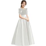 تصميم قديم: تصميم الأكمام المنتفخة كلاسيكي ولطيف، ويزين خطوط الذراع بذكاء لإضافة سحر على طراز القصر إلى المظهر العام. تصميم التنورة الكبيرة يسمح بالتمدد الطبيعي أثناء المشي، مما يخلق تأثيرًا بصريًا حالمًا وأنيقًا يلبي توقعات الأطفال من الملابس الاحتفالية.