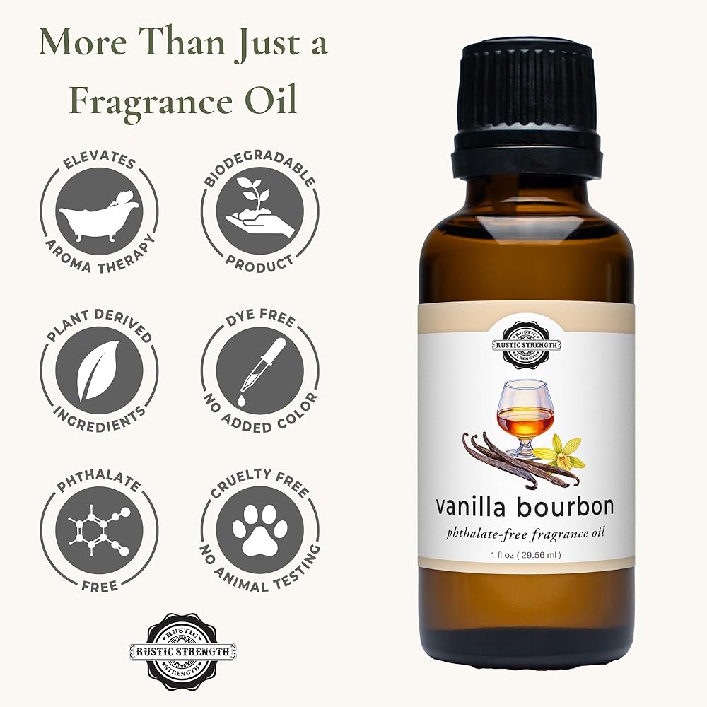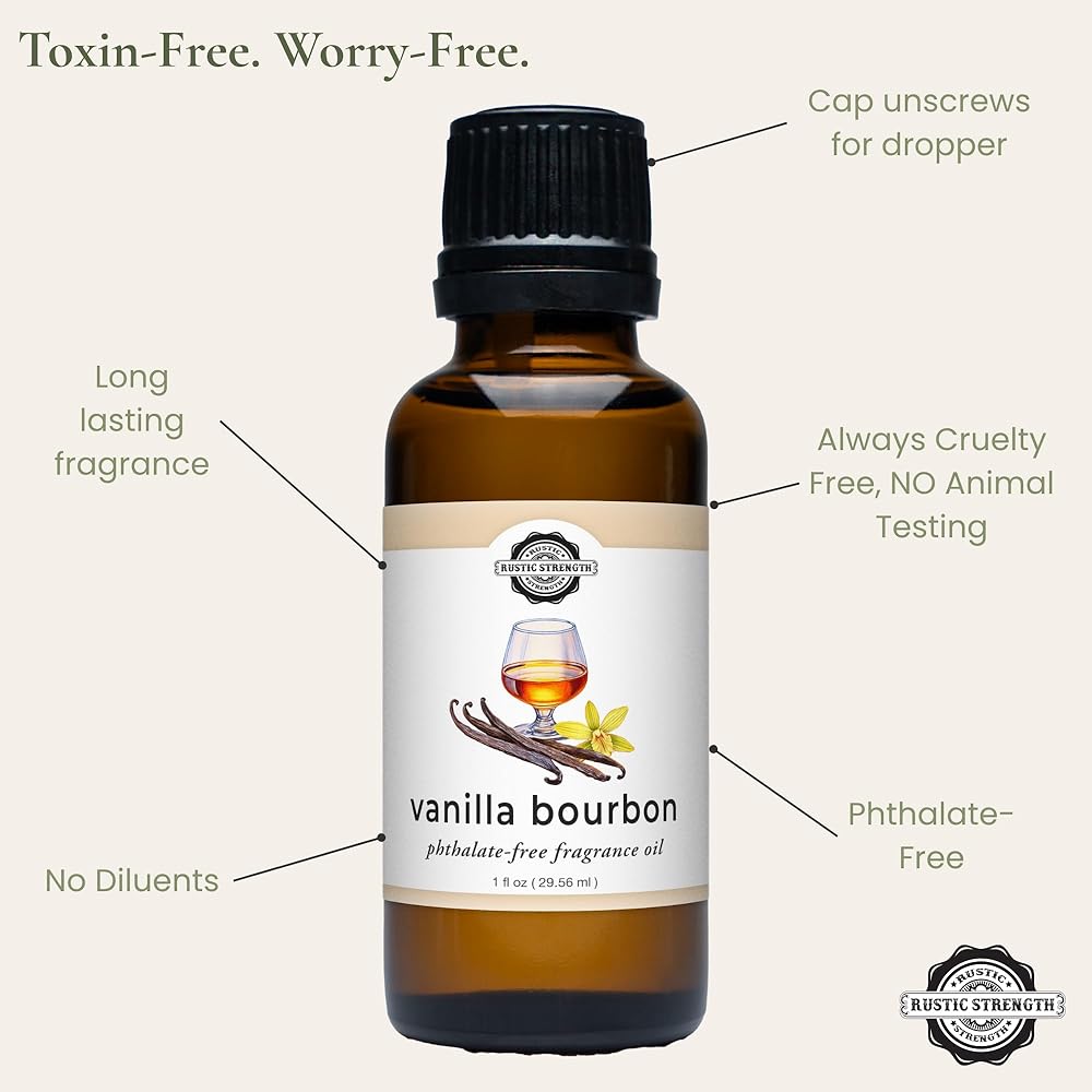 Enjoy beautiful, long-lasting fragrance — without the toxins. Rustic Strength Vanilla Bourbon Phthalate-Free Fragrance Oil is crafted from high-purity aromatic compounds that meet strict Prop 65 safety standards. Every drop is certified free of 624 carcinogens and 323 reproductive or developmental toxins listed under California's Prop 65 Act. These GRAS-safe (Generally Recognized As Safe) synthetics deliver a clean, consistent aroma perfect for use in DIY cleaners, diffusers, home care, or scenting Rustic Strength Wool or Alpaca Dryer Balls. Made for sensitive homes and conscientious makers, this fragrance oil provides the perfect balance of performance, purity, and peace of mind.