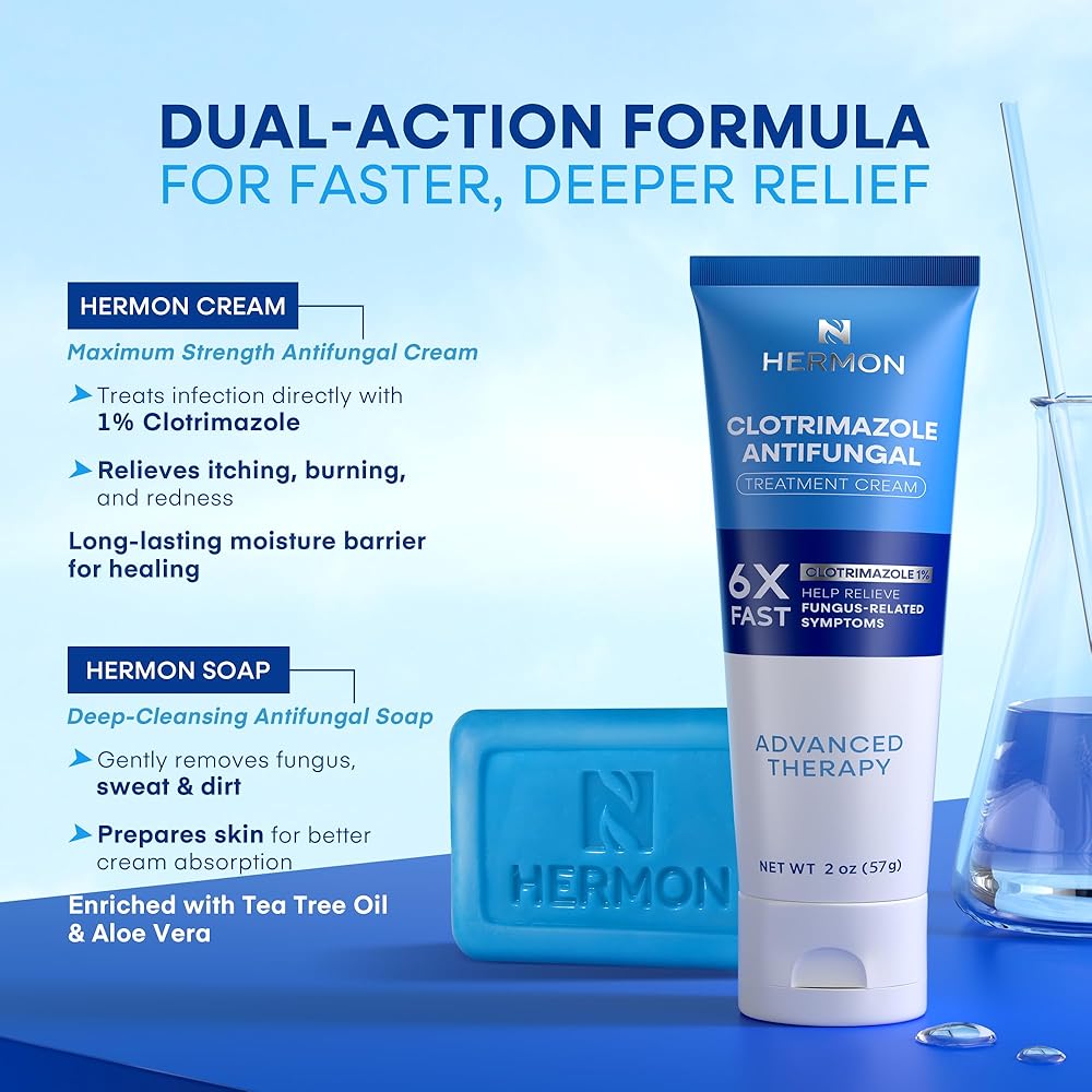 مجموعة معالجة مضادة للفطريات مزدوجة المفعول: تجمع مجموعة المعالجة الكاملة المضادة للفطريات بين كريم قوي مضاد للفطريات وصابون مضاد للفطريات. استخدميه يوميًا لتنظيف بشرتك والتحكم فيها، مما يساعد على الحماية من الحكة والانزعاج الناجم عن مشاكل مثل قدم الرياضي والقوباء الحلقية وحكة اللعب، مع توفير حماية شاملة تدوم طويلاً.