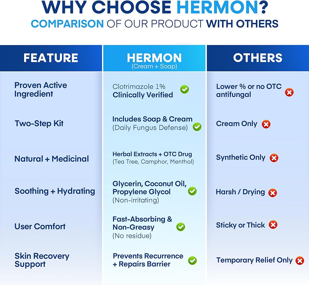 استعيدي الراحة، وعززي الثقة: لا تدع البشرة المصابة بالحكة وغير المريحة تؤثر على حياتك. توفر لك مجموعتنا ذات المفعول المزدوج فوائد مهدئة ومجددة، مما يسمح لك باستعادة بشرة صحية ومريحة. من خلال إدارة مشكلات مثل قدم الرياضي ودودة الحنجرة وحكة اللعب بشكل فعال، يمكنك تعزيز ثقتك بنفسك والبقاء نشيطًا.