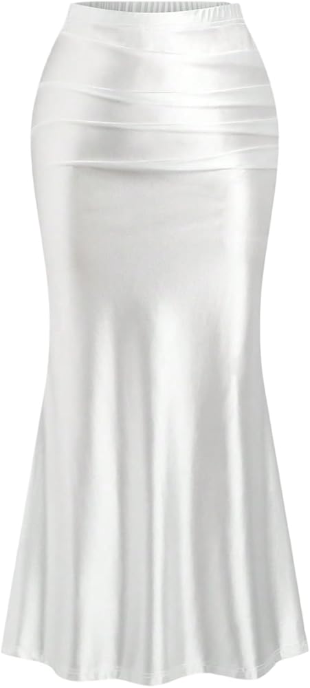 تنورة Floerns النسائية ذات الحجم الكبير الأنيقة عالية الخصر للحفلات ذات ذيل السمكة متوسطة الطول in Kuwait