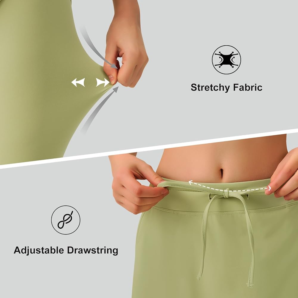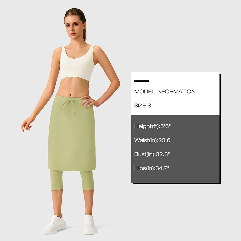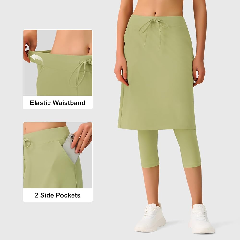 تنانير طويلة بطول الركبة 55.88 سم: السراويل الضيقة ذات التنانير الطويلة الواسعة توفر تغطية أكبر للورك، والسراويل الضيقة ذات التنورة الطويلة تمنحك الثقة والأناقة بسبب التغطية الكاملة