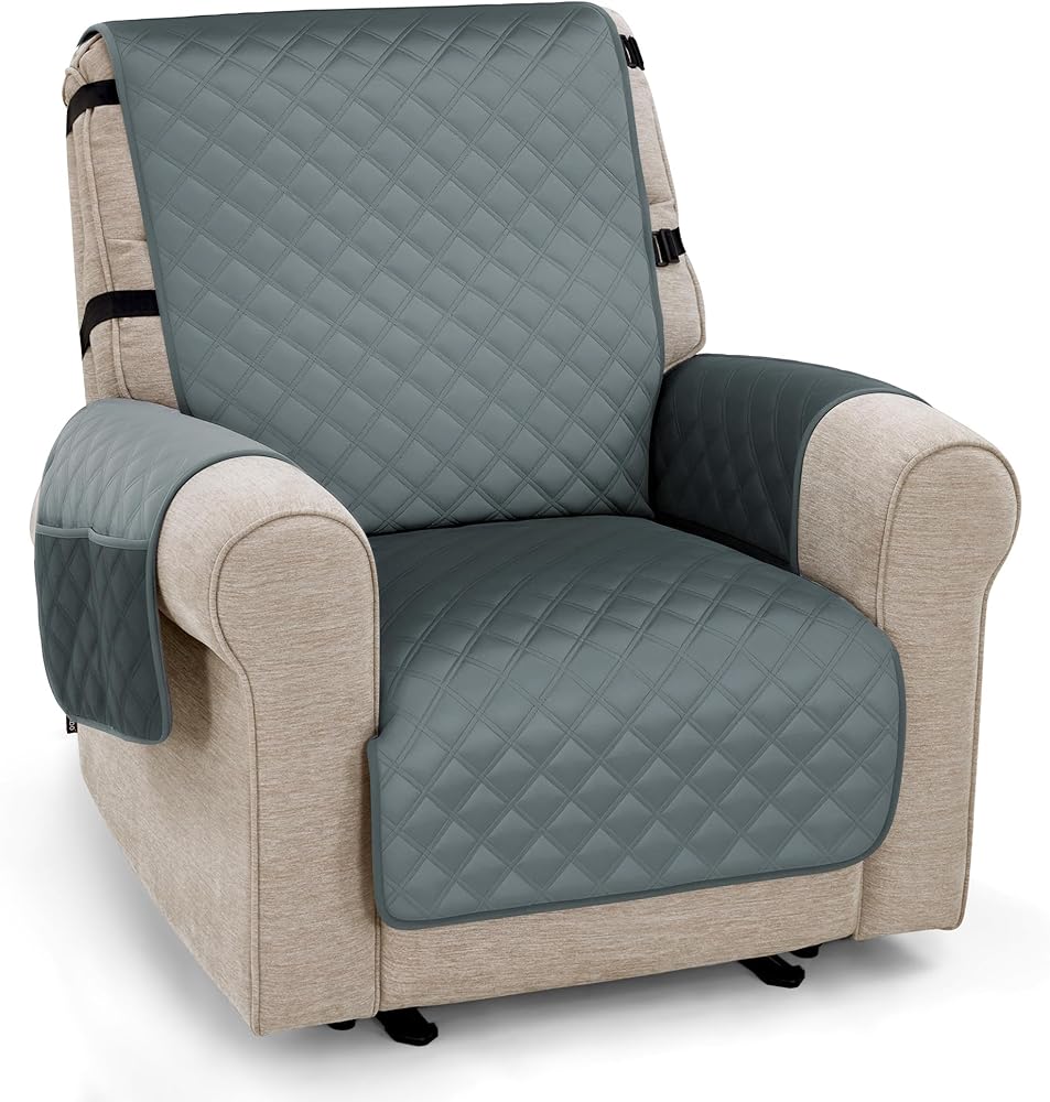 غطاء كرسي استرخاء مقاوم للماء من إم كومبو، غطاء كرسي مخملي غير قابل للانزلاق مع جيوب، أغطية حماية للأثاث قابلة للغسل للحيوانات الأليفة والأطفال (رمادي داكن، مقعد واحد)