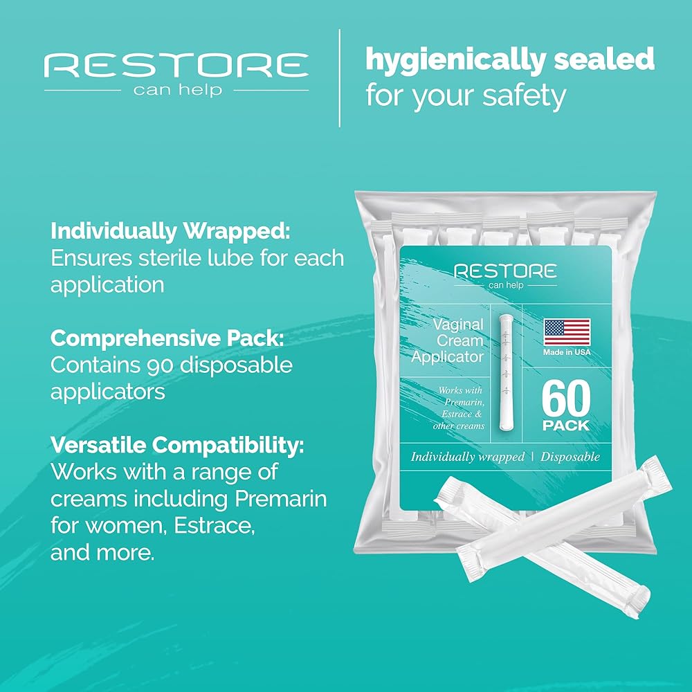 خالية من مادة BPA - مصنوعة في الولايات المتحدة الأمريكية - أدوات تطبيق مهبلية للاستعمال مرة واحدة - أداة توزيع ملولبة ذات طرف مريح محكمة الغلق من أجل النظافة. يناسب Estrace، Preseed، Premarin، ومعظم الكريمات والمواد الهلامية ومواد التشحيم التي لا تحتاج إل