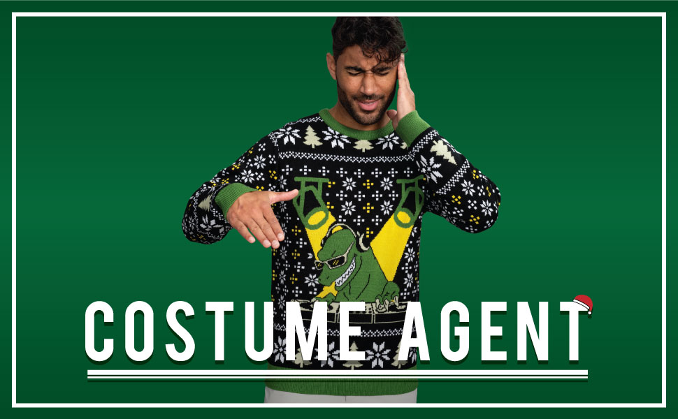 Unique T-Rex DJ design offers a fun twist to traditional holiday, ensuring you stand out at any event.
