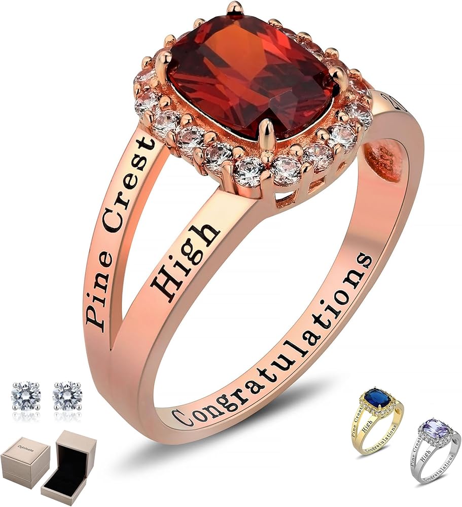خواتم فئة مخصصة خواتم فئة شخصية بالكامل للنساء المدرسة الثانوية 10KT الذهب أو خواتم الفضة الاسترليني خواتم فئة المرأة حجم 5-15 خواتم التخرج للنساء خواتم جوهرة زركونيا مكعب in Kuwait