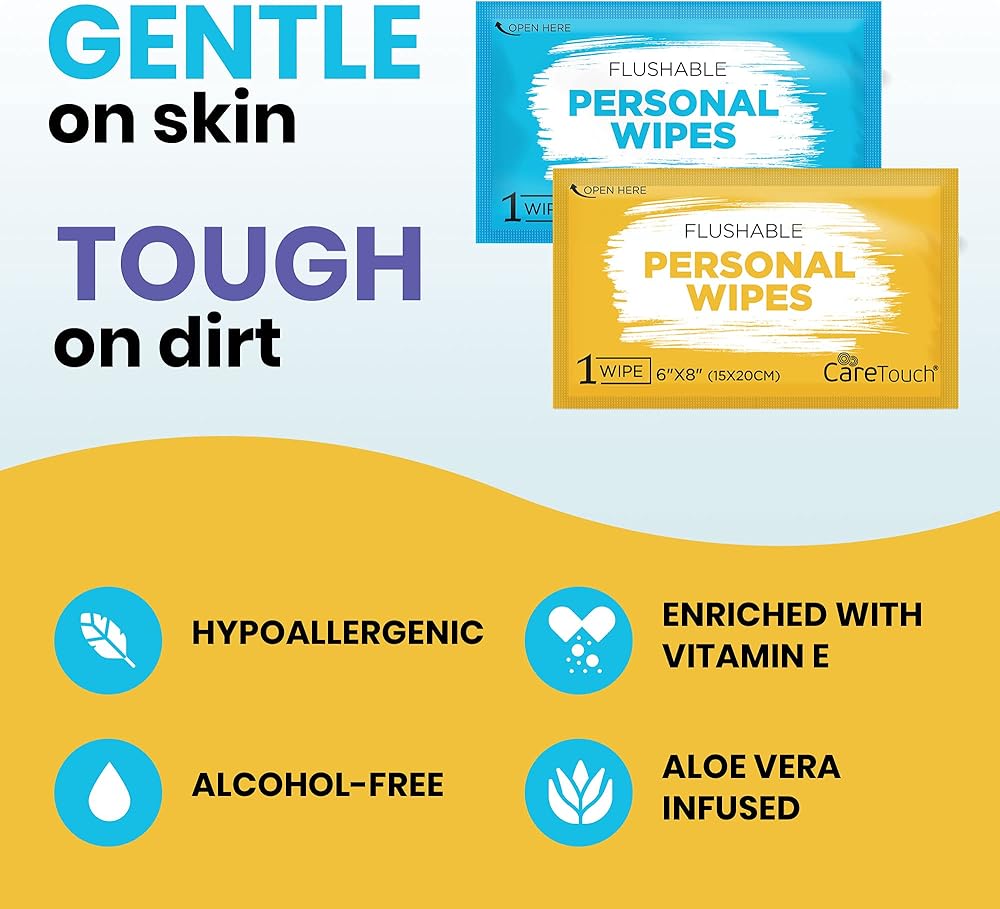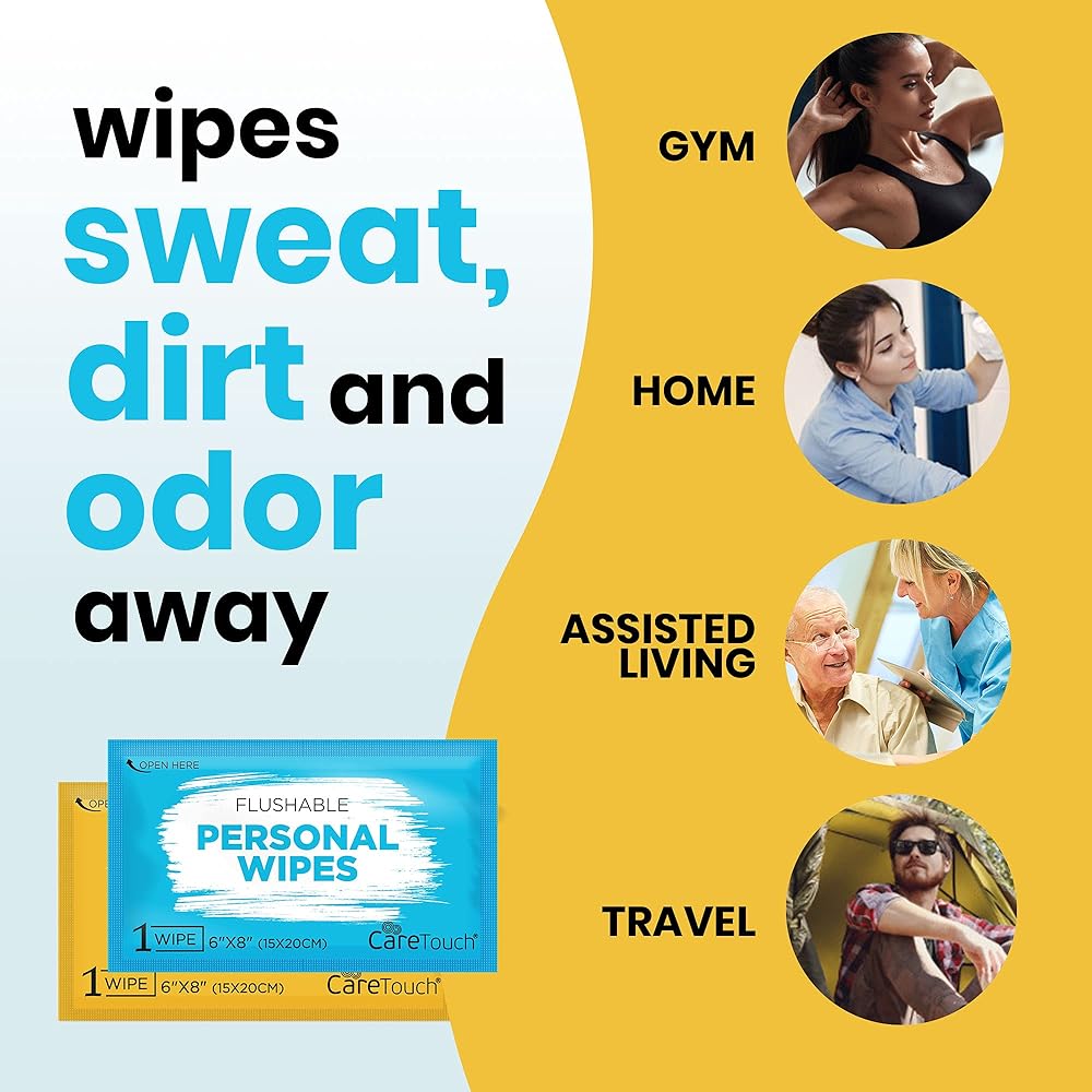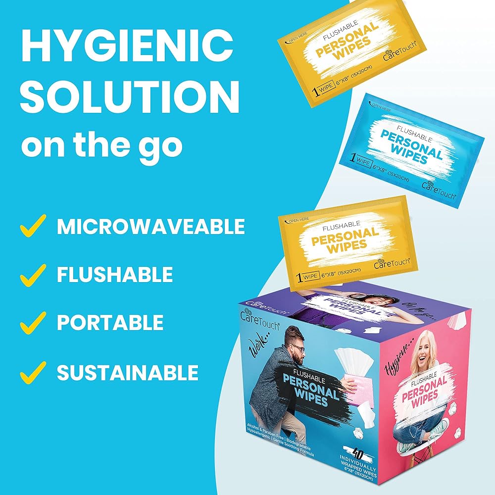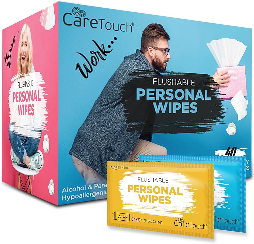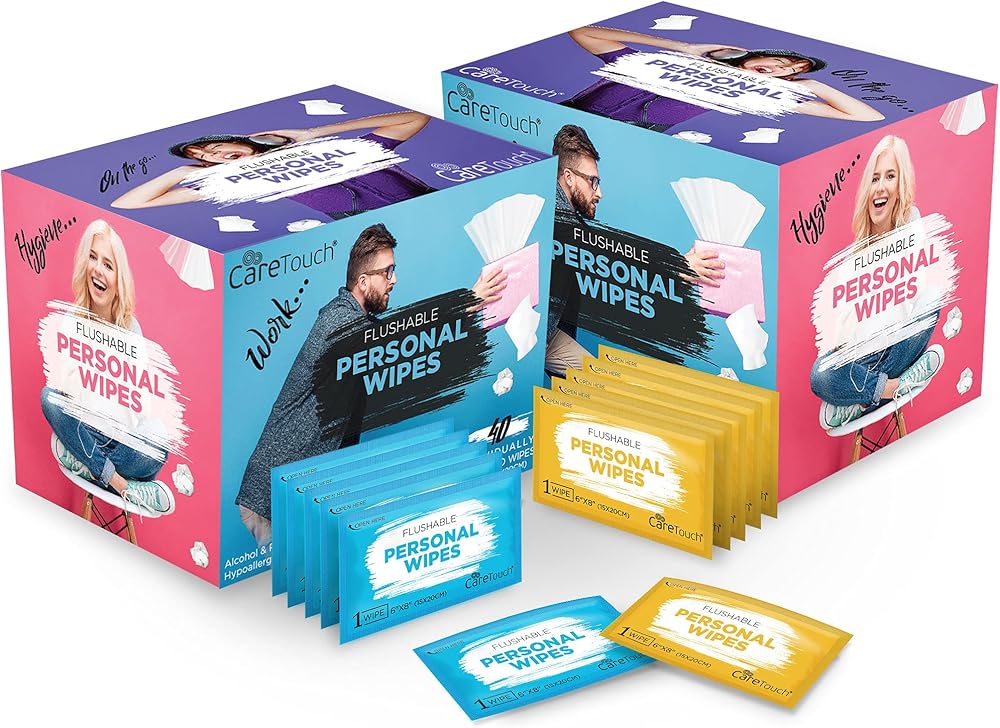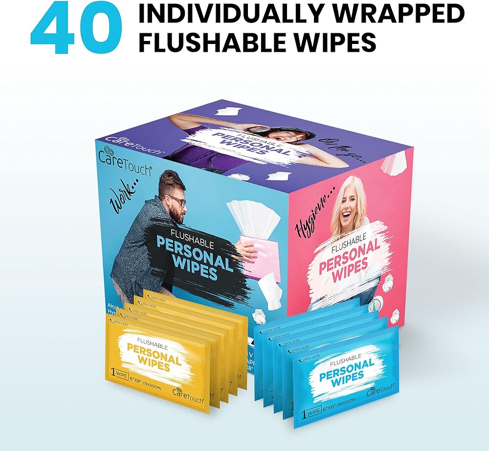 Care Touch Flushable Personal Wipes for Men and Women, Pack of 2, 80 Individually Wrapped Wet Wipes