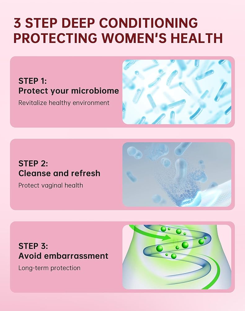البروبيوتيك للنساء: يعد الحفاظ على توازن بكتيري صحي داخل الجهاز الهضمي أمرًا أساسيًا لتحسين الصحة العامة؛ يحتوي مزيج العناية المهبلية الخاص بنا على 4 سلالات بروبيوتيك لتعزيز صحة المهبل