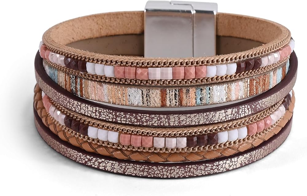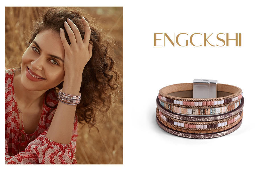 • تصميم أنيق: ارفعي مظهرك مع أساور إنجكشي المغلفة للنساء، والتي تتميز بتصميم أنيق متعدد الطبقات يجمع بين أناقة السوار الجلدي وسحر أساور بوهو للنساء
