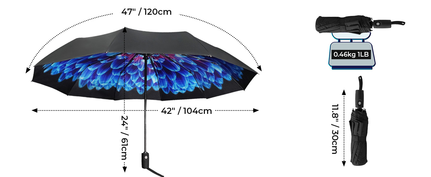 تغطية بدون حجم كبير: تفتح على حماية واسعة تبدو مظلة كبيرة مقارنة بالمظلة الصغيرة أو المظلة الصغيرة، رائعة للمظلات اليومية والاستخدام في المدينة بدون وزن ثقيل.