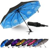 جاهز للمطر والشمس: يتساقط قماش حريري كثيف 210T للاستحمام بسرعة للحصول على مظلات مطر موثوقة، في حين أن عامل الحماية من أشعة الشمس فوق البنفسجية 50+ يجعلها مظلة شمسية سهلة الاستخدام بين العواصف، ومظلة سفر واحدة للطقس المختلط.