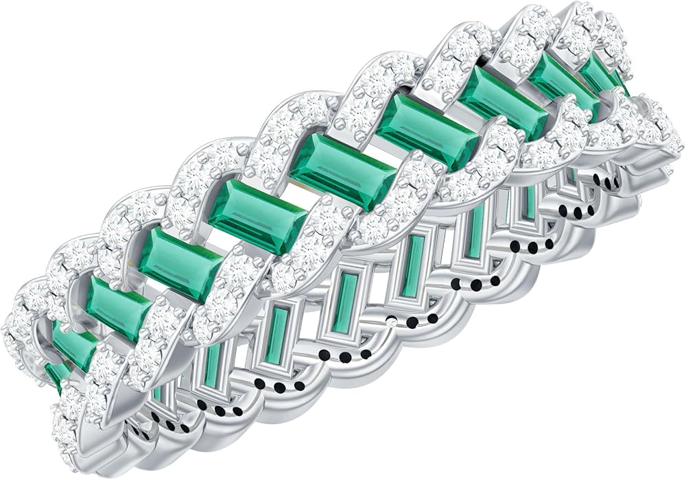 احتفل باللحظات الخاصة مع خاتم Eternity Band المذهل الذي يرمز إلى الحب والالتزام. هذا الخاتم المزين بشكل جميل بالزمرد والمويسانتي الذي تم تصنيعه في المختبر، يعد خيارًا مثاليًا لخاتم الذكرى السنوية للزفاف.