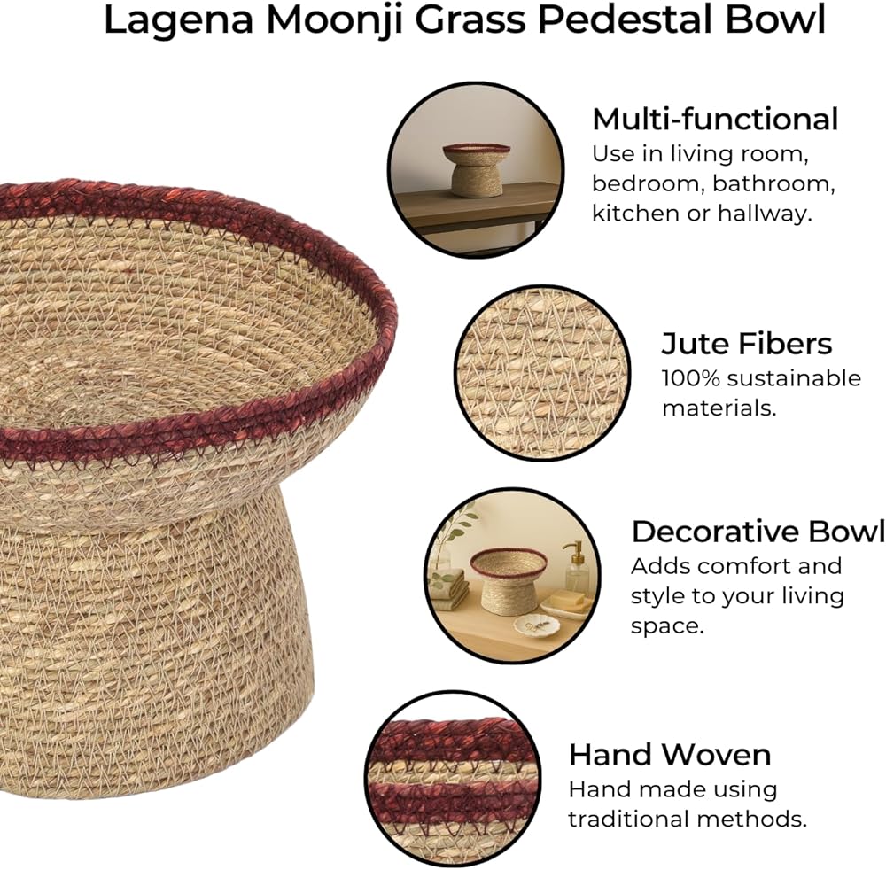 Natural material with timeless texture – Made from breathable moonji grass, this pedestal bowl adds organic warmth and layered texture to your space while offering everyday functionality.