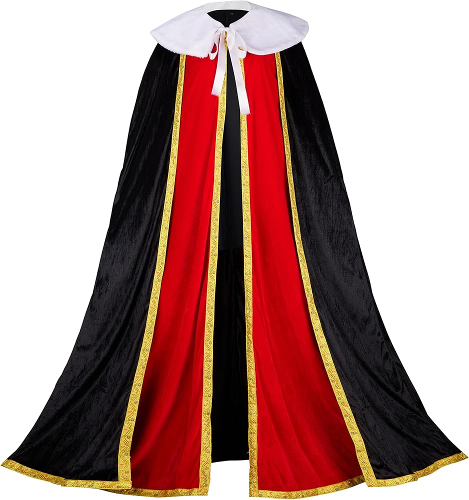يتكون زي الملك الملكة من قطعتين من الرداء المزيف باللونين الأسود والأحمر وياقة من الفرو الأبيض، ورداء ملك العصور الوسطى مزين بحزام ذهبي، يبدو ملكيًا