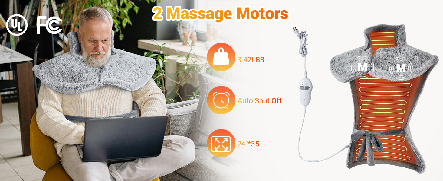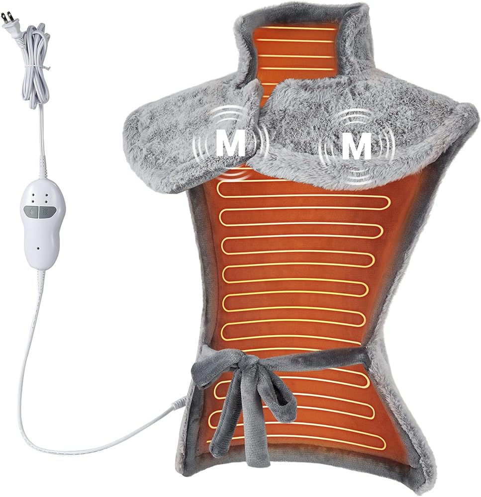 • 【تغطية كاملة وحجم XXL】 تتميز وسادة التسخين الكهربائية هذه بحجم كبير ومحيط مريح لتوفير تغطية شاملة للرقبة والكتفين والظهر. تعمل وظيفة التدليك الاهتزازي على تخفيف آلام العضلات والتوتر والتشنجات والتشنجات المزمنة بشكل فعال.