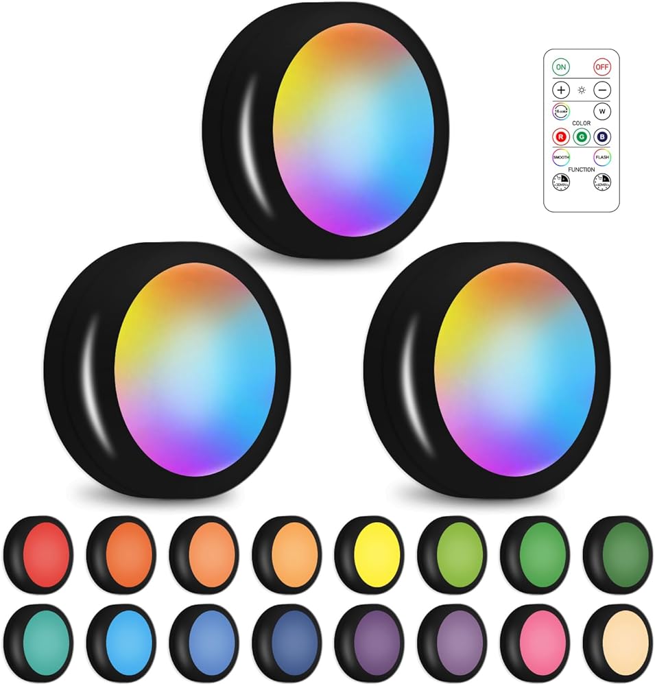 SIXDEFLY Wireless Color Changing LED Puck Light 6 Pack With 2 Remotes, especially as LED night light great for dark areas, such as closet, under cabinet, hallway and etc.