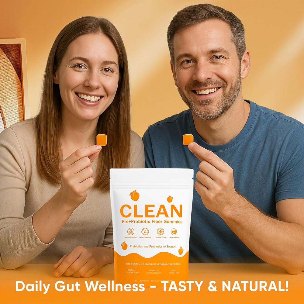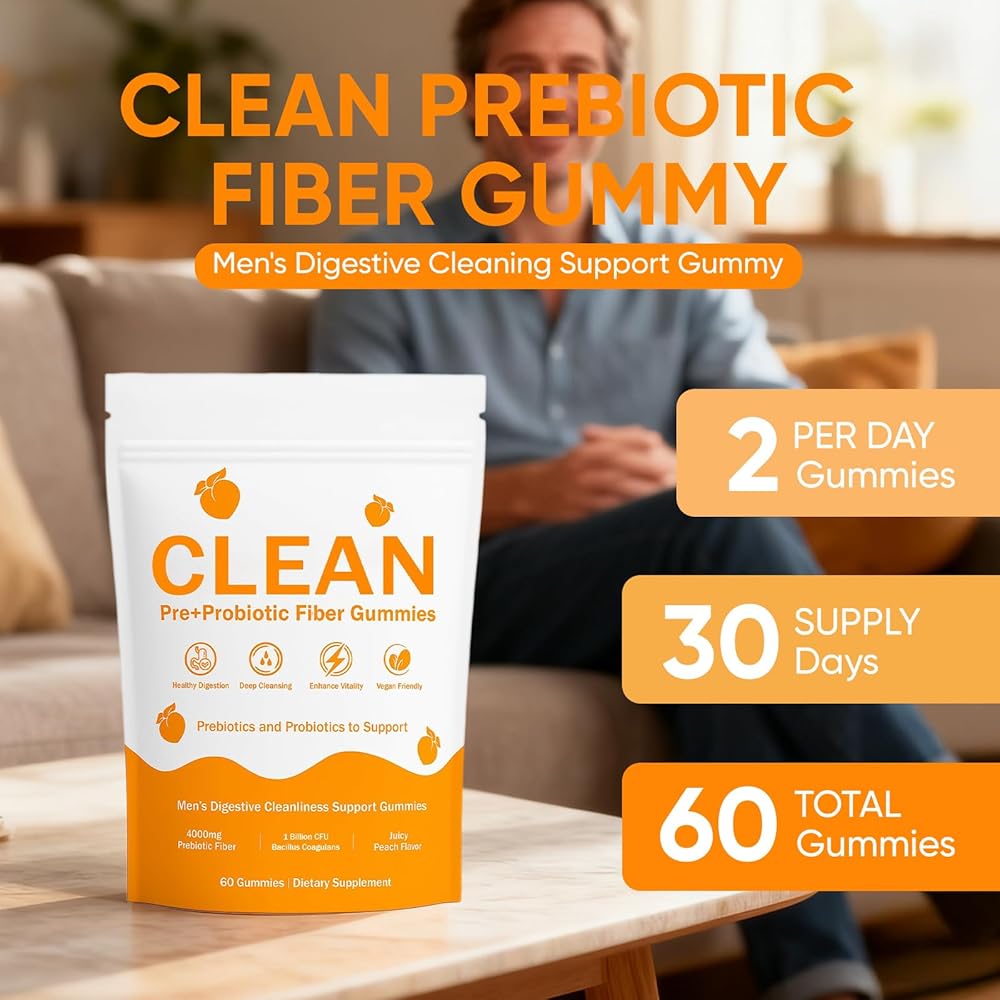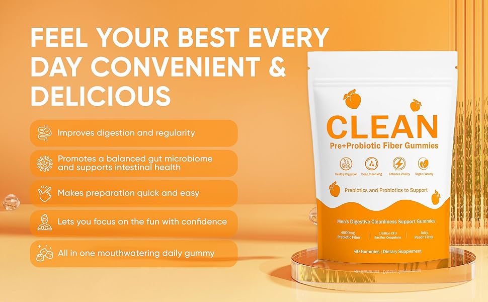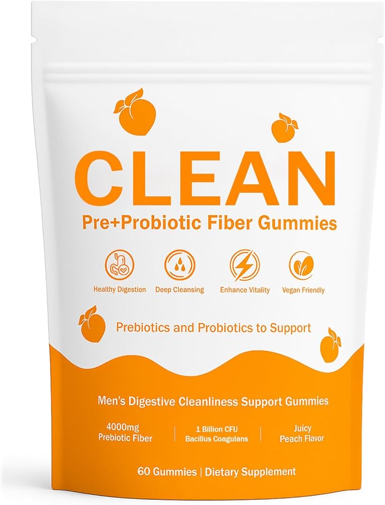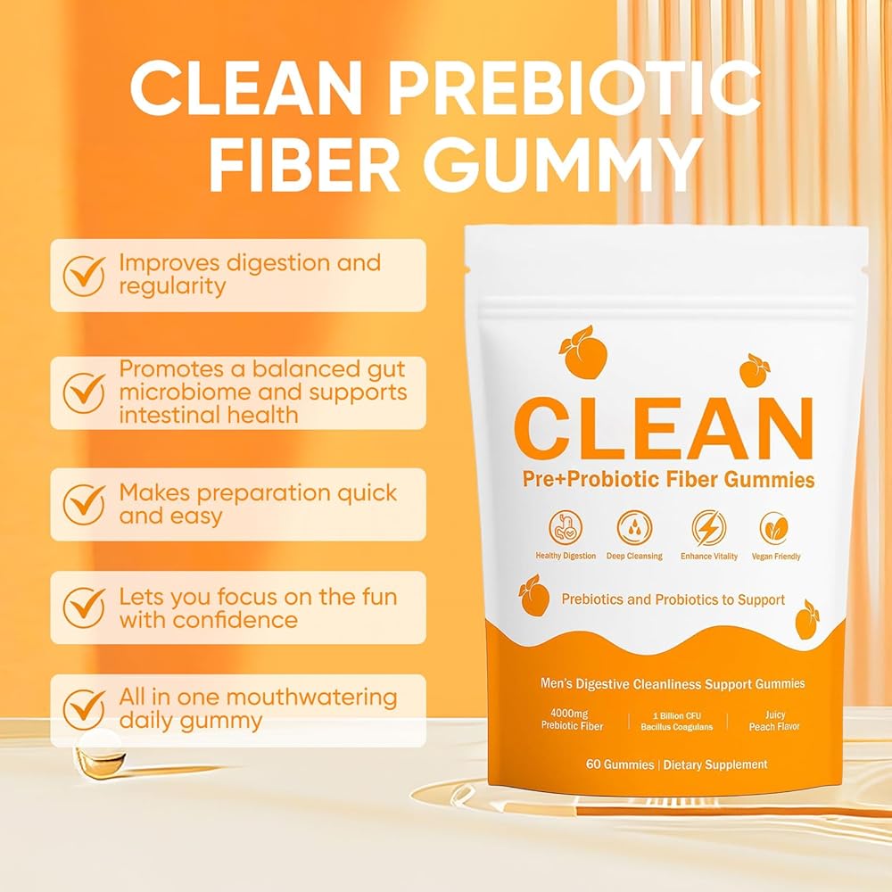 صمغ ألياف البريبايوتك النظيفة للرجال، نكهة الخوخ، صمغ ألياف ما قبل + البروبيوتيك، خالية من السكر، دعم صحة الأمعاء، تحسين الهضم، علكة دعم تنظيف الجهاز الهضمي للرجال، 60 قطعة (1)