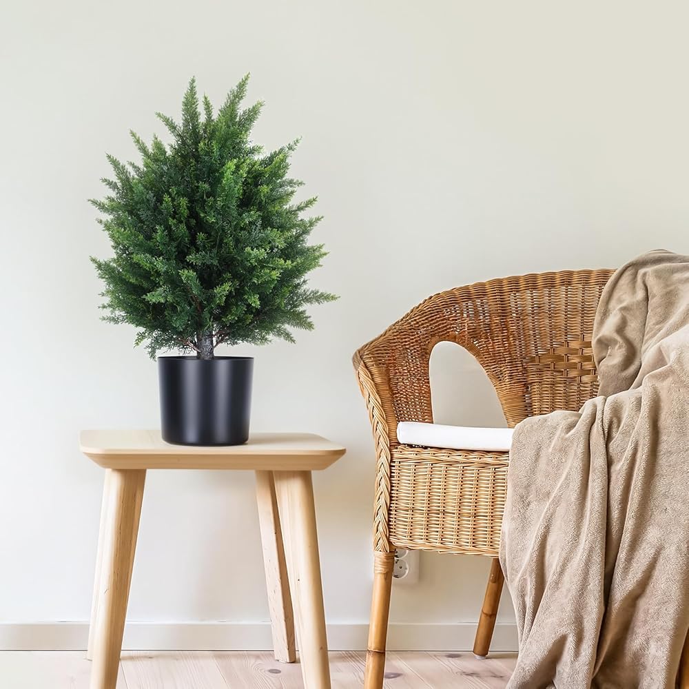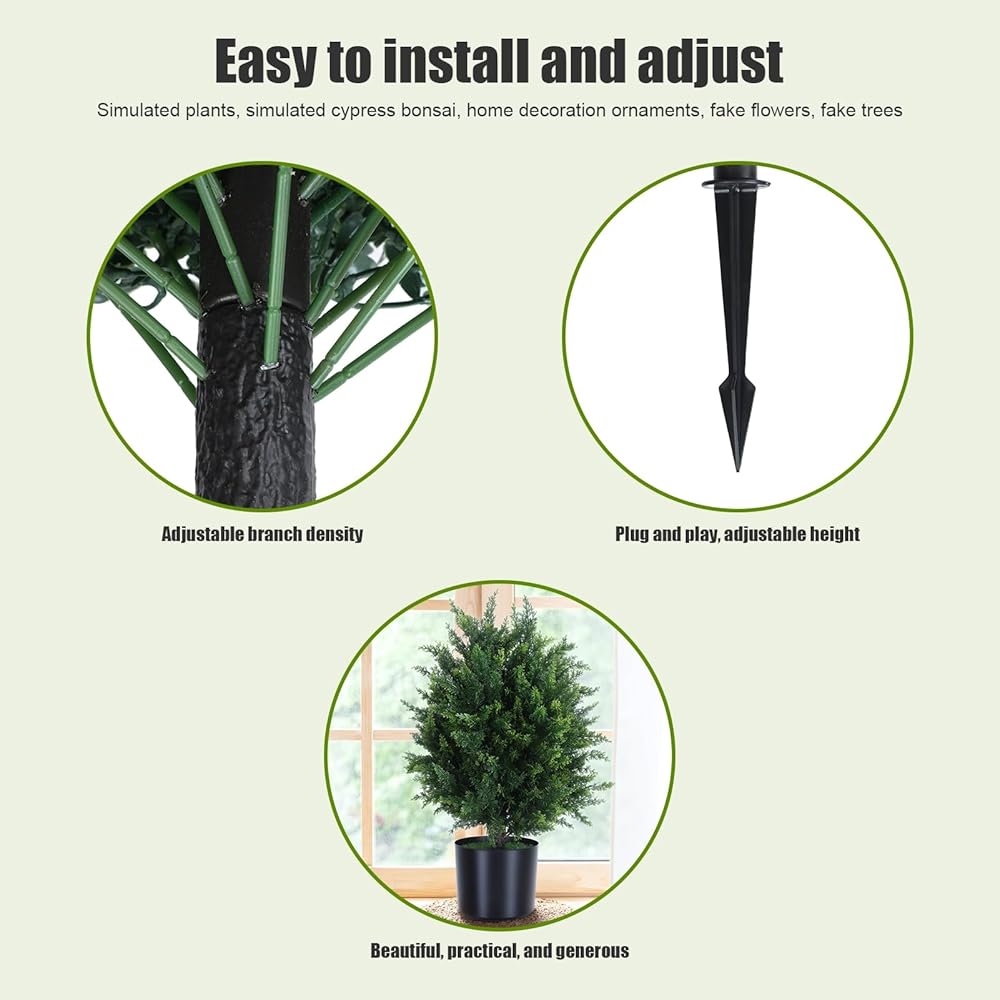 Complete Set: You will get 2 sets of artificial cypress trees. These cypress trees are perfect for front porch decor, garden, home, and so on.