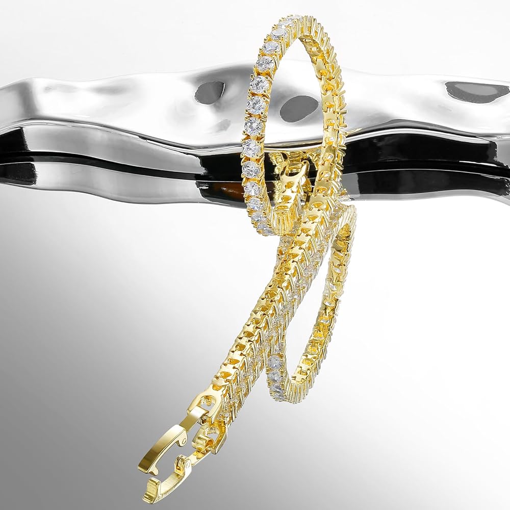 سوار تنس زركونيا مكعب 3 مم مطلي بالذهب 14 قيراط للنساء والرجال، سوار تنس كلاسيكي مقاس معصم صغير 6-7.5 بوصة