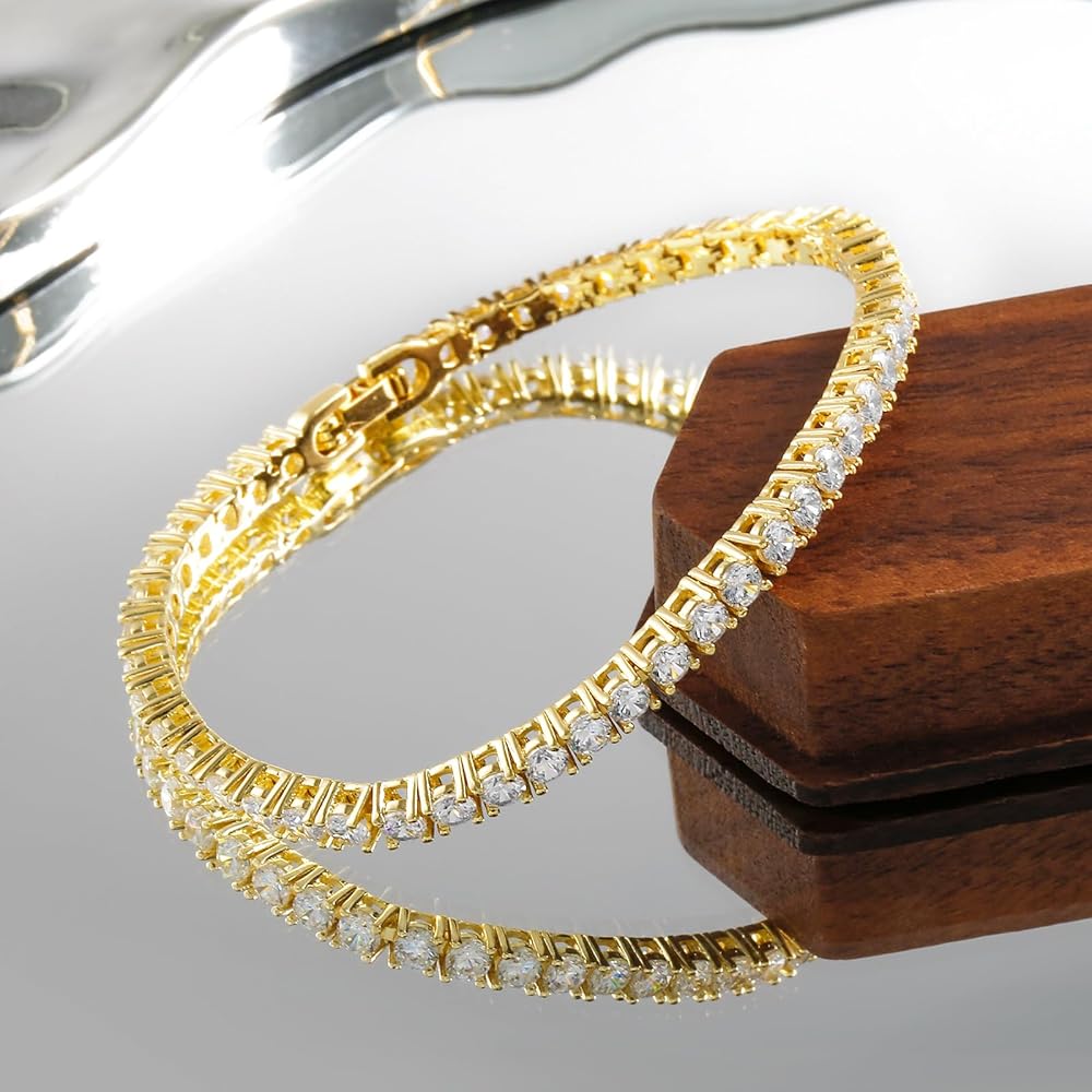 - سوار التنس الذهبي، طلاء ذهبي عيار 14 قيراط يحافظ على اللون لفترة طويلة ولا يفقد بريقه.