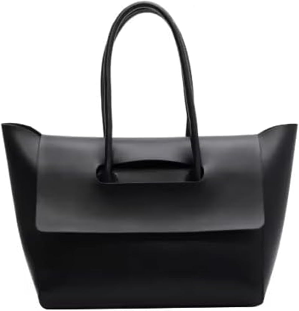 Rcheommo Women Vintage PU Leather Large Tote Bag Flap Tote Top Handle Satchel Handbags Shoulder Purses