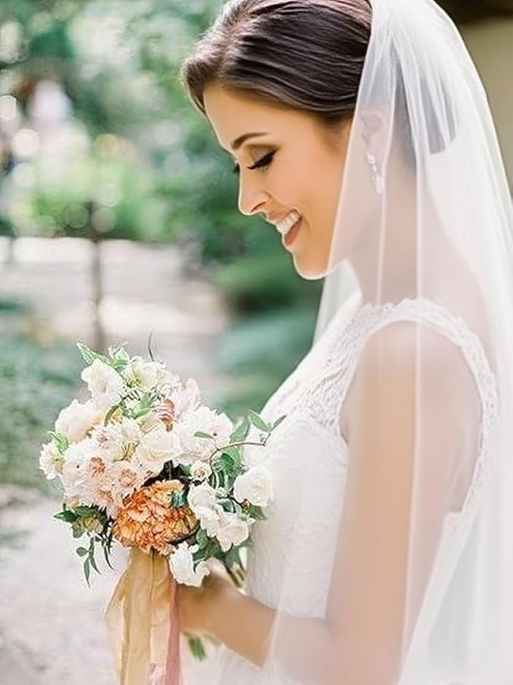 Feather-Light & Soft Tulle: Made from a single layer of high-quality, lightweight tulle, this veil offers a comfortable and breathable fit without sacrificing elegance or movement, allowing you to dance and celebrate with ease