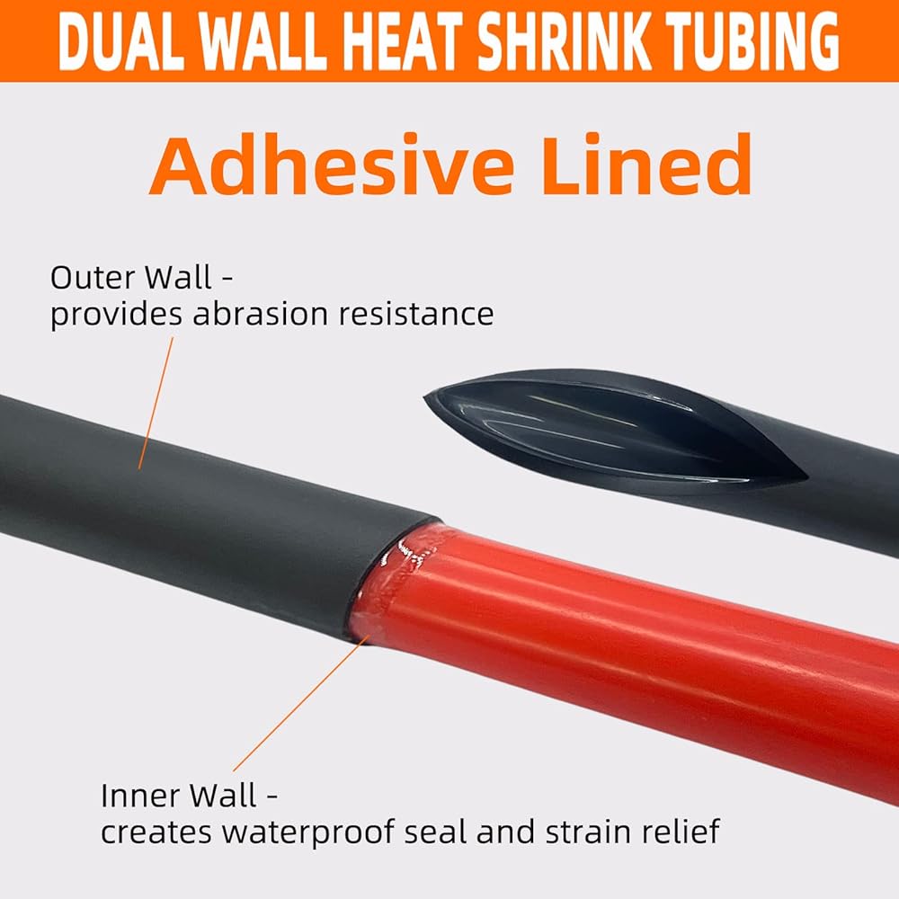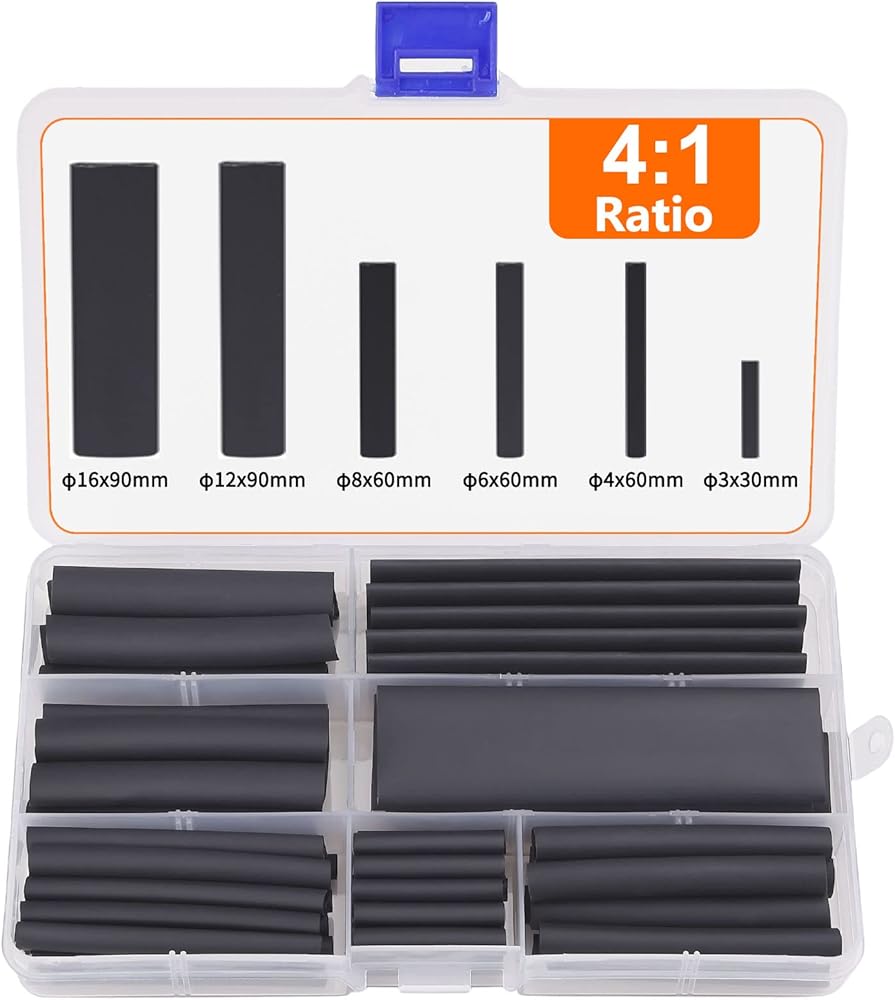 مجموعة أنابيب الانكماش الحراري السلكية - مبطنة بمادة لاصقة بنسبة 4:1، أنابيب تغليف مقاومة للحرارة للكهرباء الصناعية المقاومة للماء، موصل حماية عازل أسود، أنابيب قابلة للانكماش بالحرارة، 73 قطعة/7 مقاسات من SZNNZD