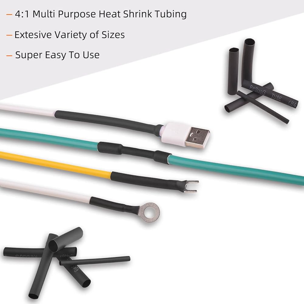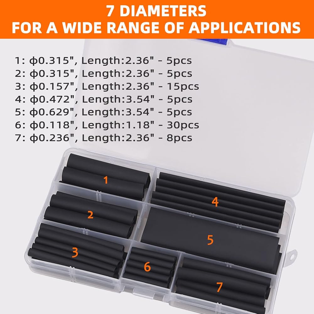 [مجموعة متنوعة من الأحجام] - إجمالي 73 قطعة بنسبة 4:1 أنابيب قابلة للانكماش بالحرارة. تتضمن تشكيلة الانكماش الحراري الأقطار السبعة الأكثر استخدامًا والتي تتراوح من φ0.0118" إلى φ0.629".