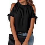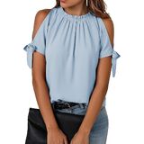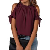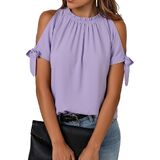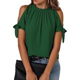 تصميم فريد: تفاصيل الكتف الباردة المثيرة تسمح لك بإظهار ذراعك النحيف بشكل مثالي. مقاس فضفاض يغطي بطنك، مظهر جميل وأنيق. ياقة مكشكشة، خط عنق خلفي مربوط ذاتيًا، أساور مرنة، رقبة مستديرة، بلوزات عمل نسائية أنيقة، تصميم أنيق يجعلك تبدو أكثر سحرًا.